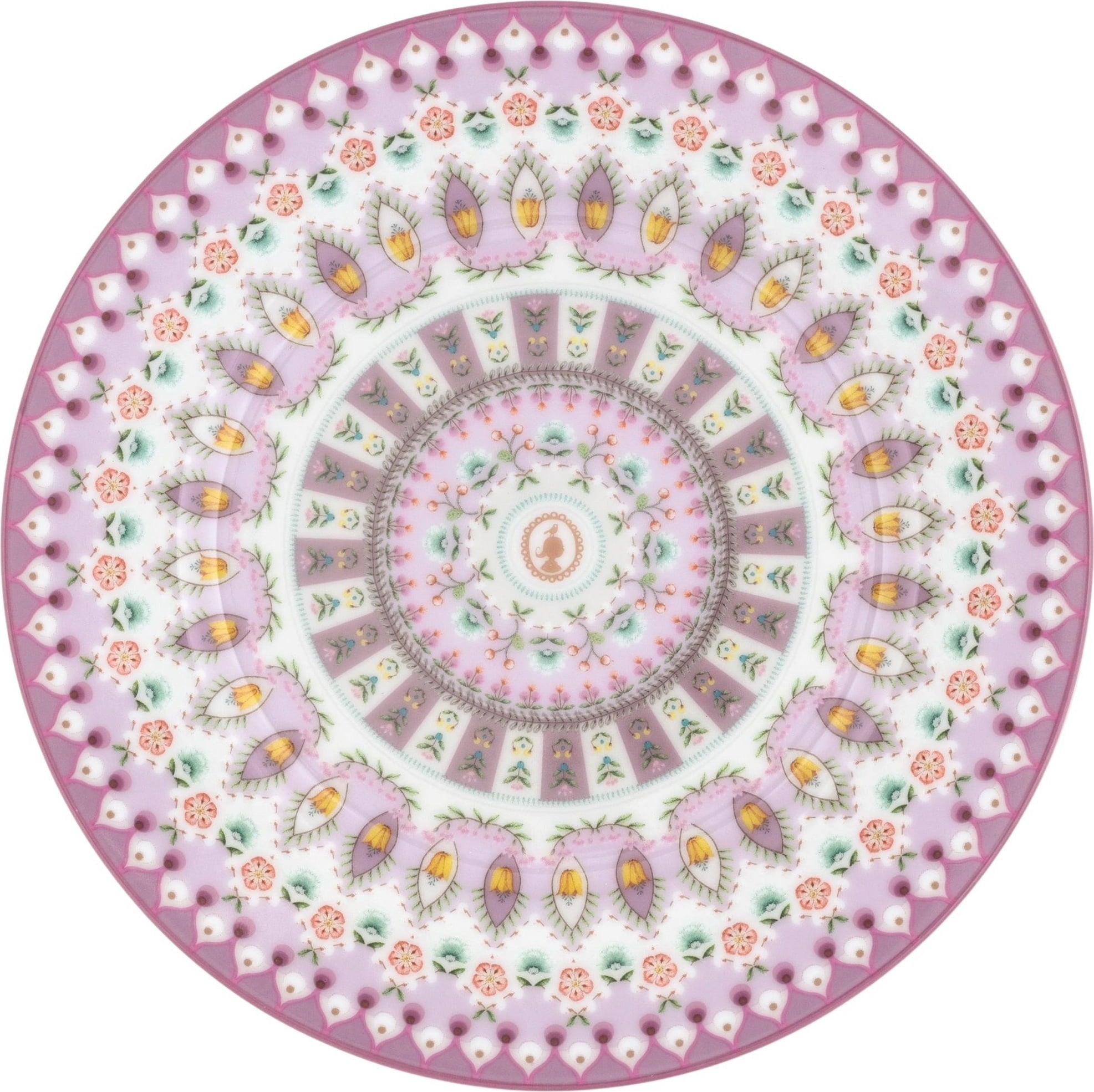 Verander je salontafel in een galerij van schoonheid met dit prachtige gebaksbordje uit de Lily & Lotus-collectievan Pip Studio! Het is versierd met een betoverende, caleidoscopische print die bestaat uit ontelbare kleine bloemetjes en blaadjes in delicate pastelkleuren. Het ingewikkelde en symmetrische patroon creëert een betoverend mandala-achtig ontwerp waar je niet genoeg van kunt krijgen.