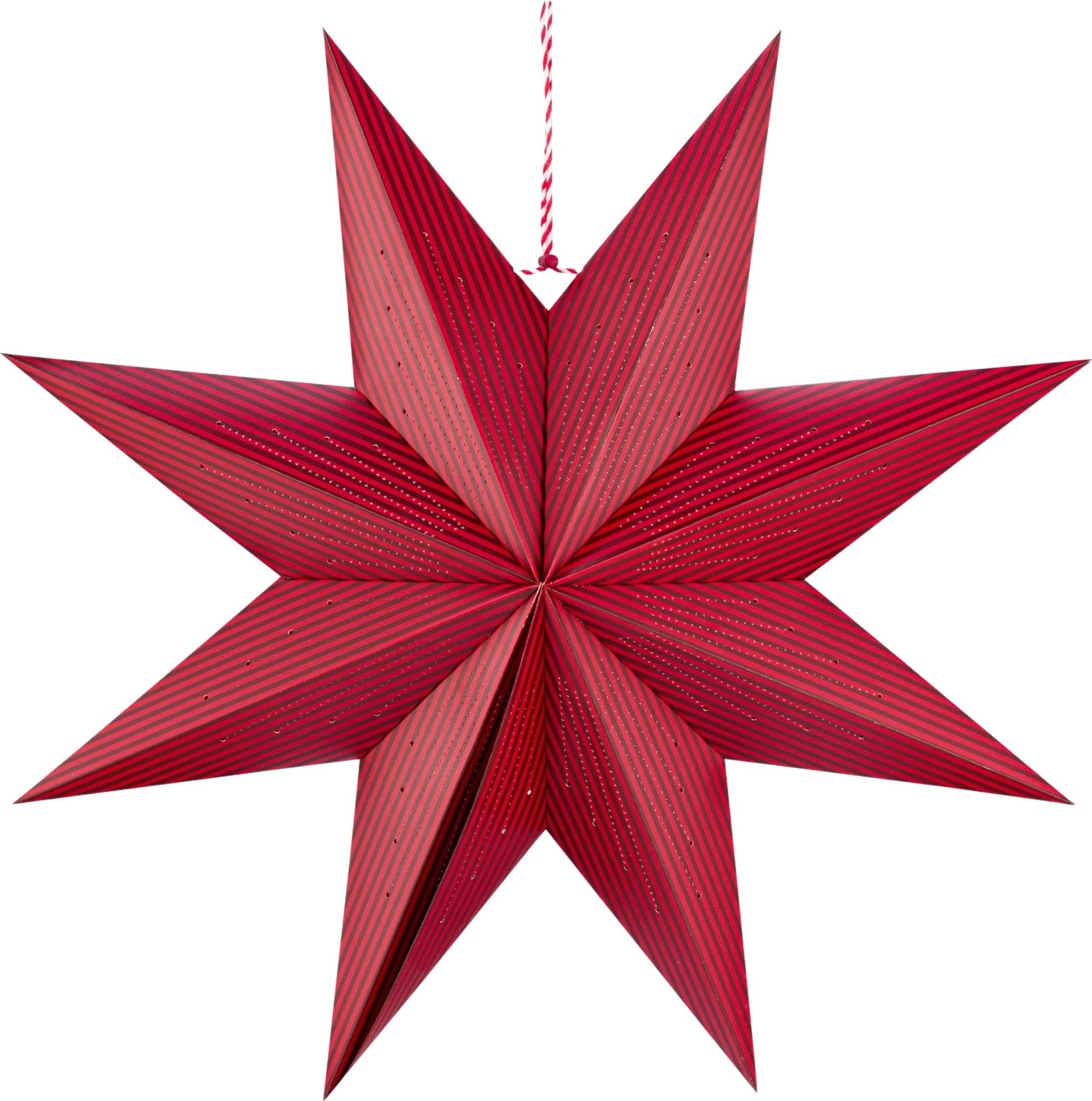 Hij maakt indruk met zijn elegante maar delicate ontwerp en heeft een gedurfde kleur met een subtiel streepjespatroon. De zorgvuldig gevouwen punten geven de ster een indrukwekkende driedimensionale diepte en een sierlijke vorm. Met een imposante afmeting van 60 cm is deze ster een echte blikvanger