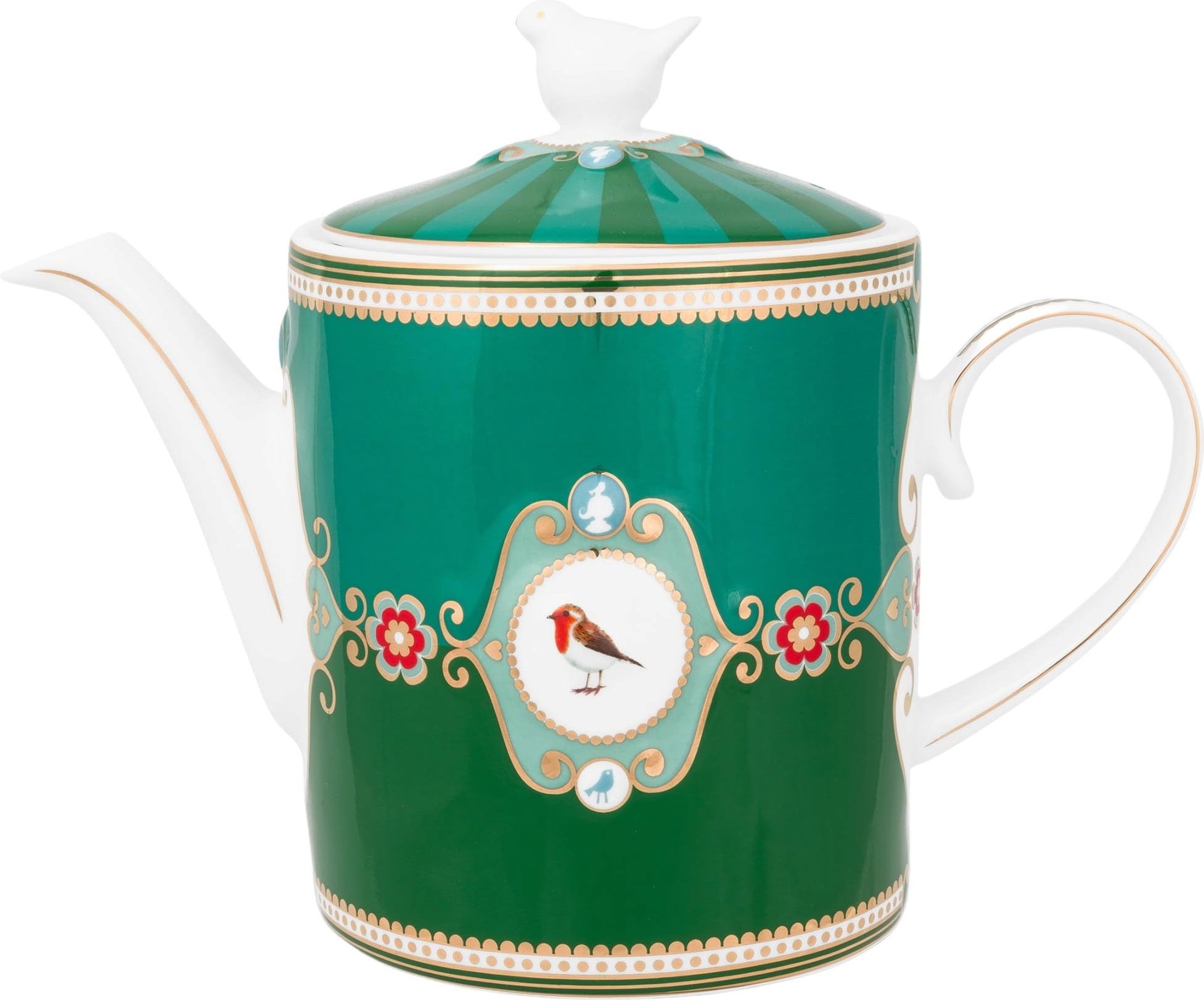 Deze theepot van Pip Studio is gemaakt van hoogwaardig, fijn porselein en maakt indruk met zijn prachtige ontwerp. Perfect op elkaar afgestemde kleuren, delicate ornamenten, gouden accenten en een medaillon met een reliëf in het midden om het schattige roodborstje te benadrukken.