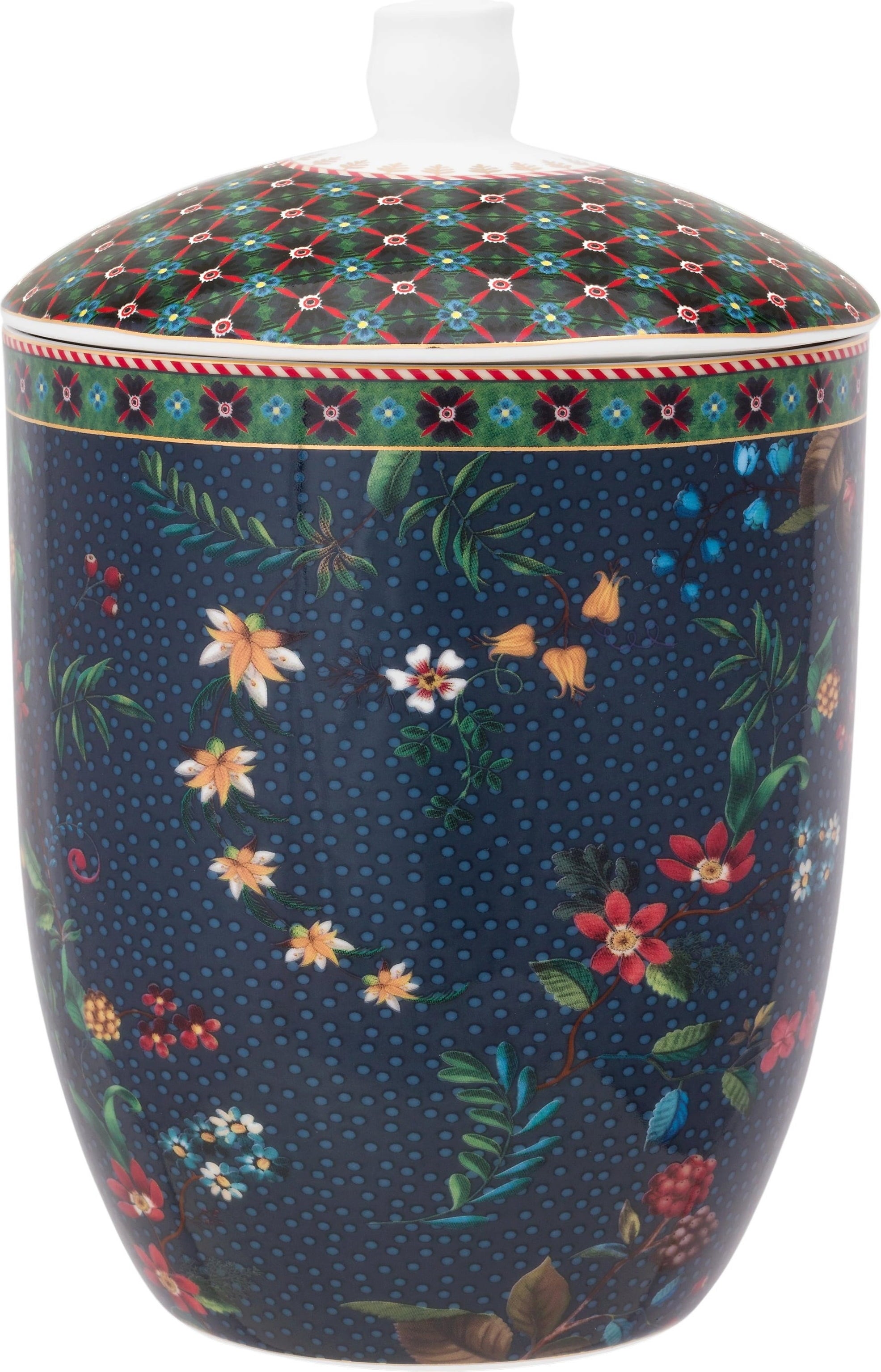 Bewaar je benodigdheden in stijl met deze prachtige voorraadpot uit de Berry Blues collectie van Pip Studio! De pot is versierd met delicate bloemen, weelderige kleuren en een elegant tegelpatroon, waardoor een klassiek, mooi ontwerp ontstaat. Met een inhoud van 1,5 liter biedt het genoeg ruimte voor koffie, thee of koekjes.