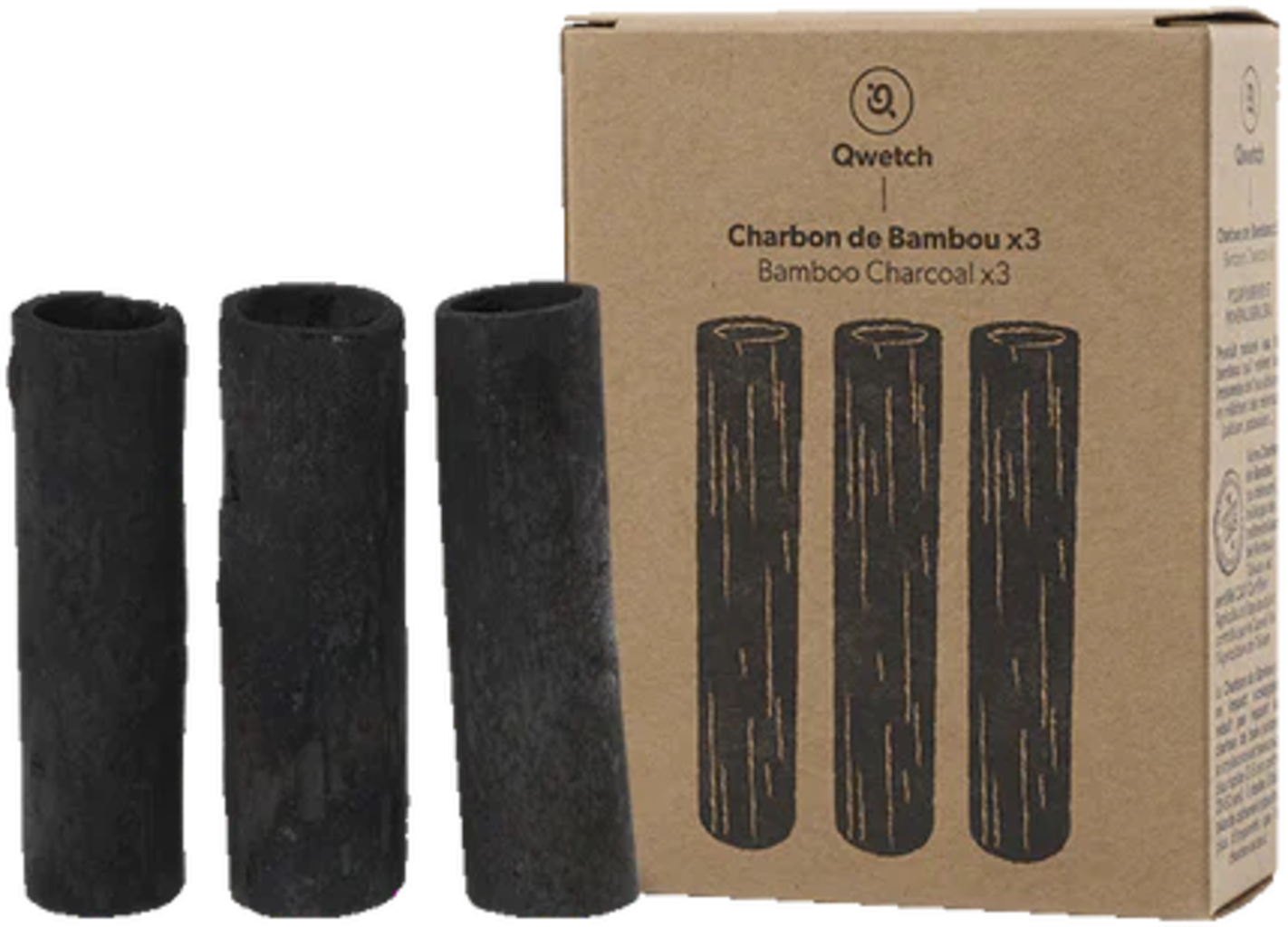 Qwetch bamboe houtskool zuivert en mineraliseert het water. De staaf houtskool houdt onzuiverheden tegen (vooral chloor) door onder andere magnesium, calcium en kalium af te geven. Qwetch hecht bijzonder veel belang aan de herkomst van de bamboe houtskool, de afwezigheid van chemische behandelingen en goede groeiomstandigheden.
