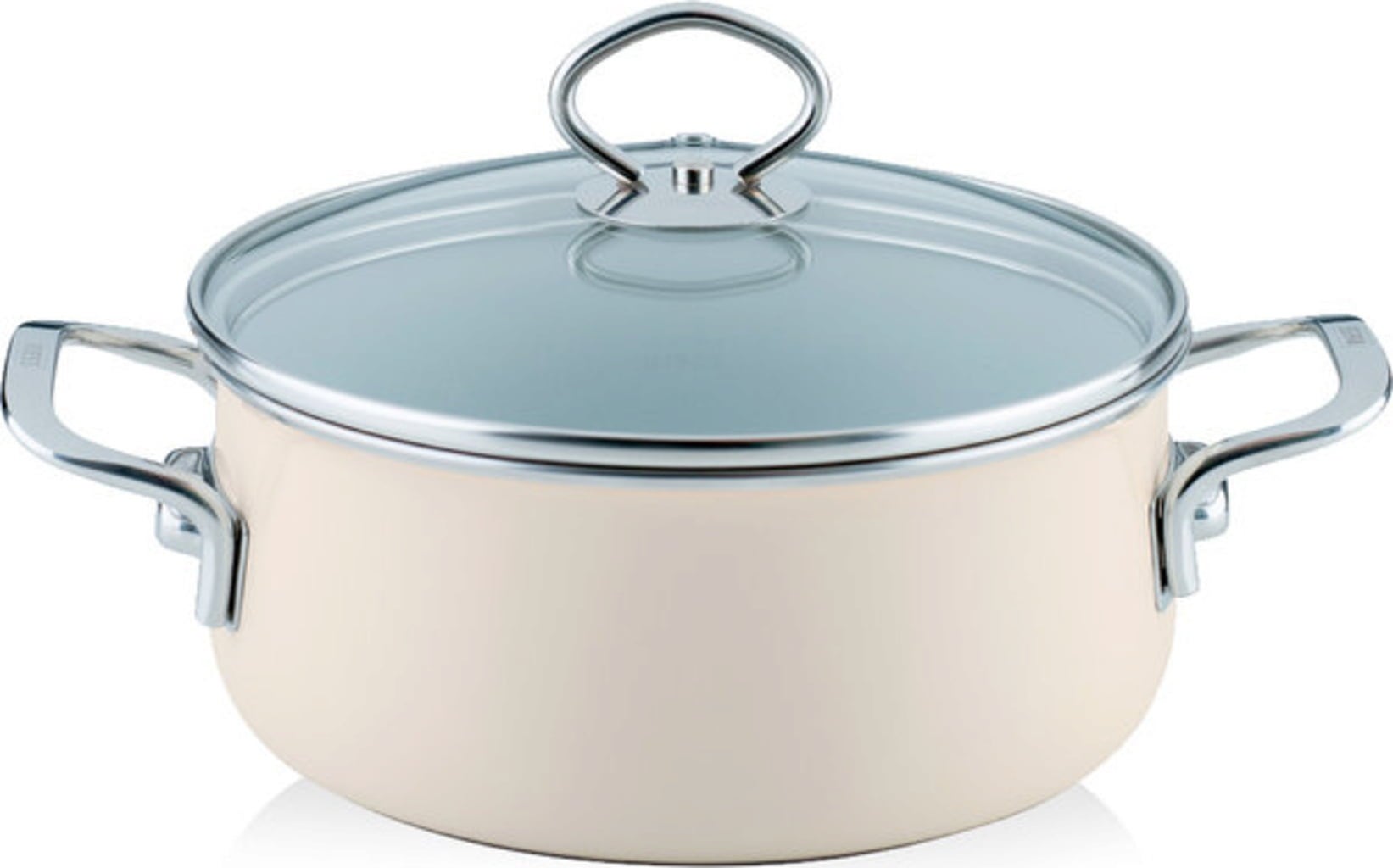 Edele braadpan in ivoorlook van topkwaliteit - voor iedereen die op zoek is naar gedempte kleuren, moderne vormen en hoge functionaliteit. Ontworpen met extra sterk staal voor het vasthouden van warmte en met een glazen deksel.