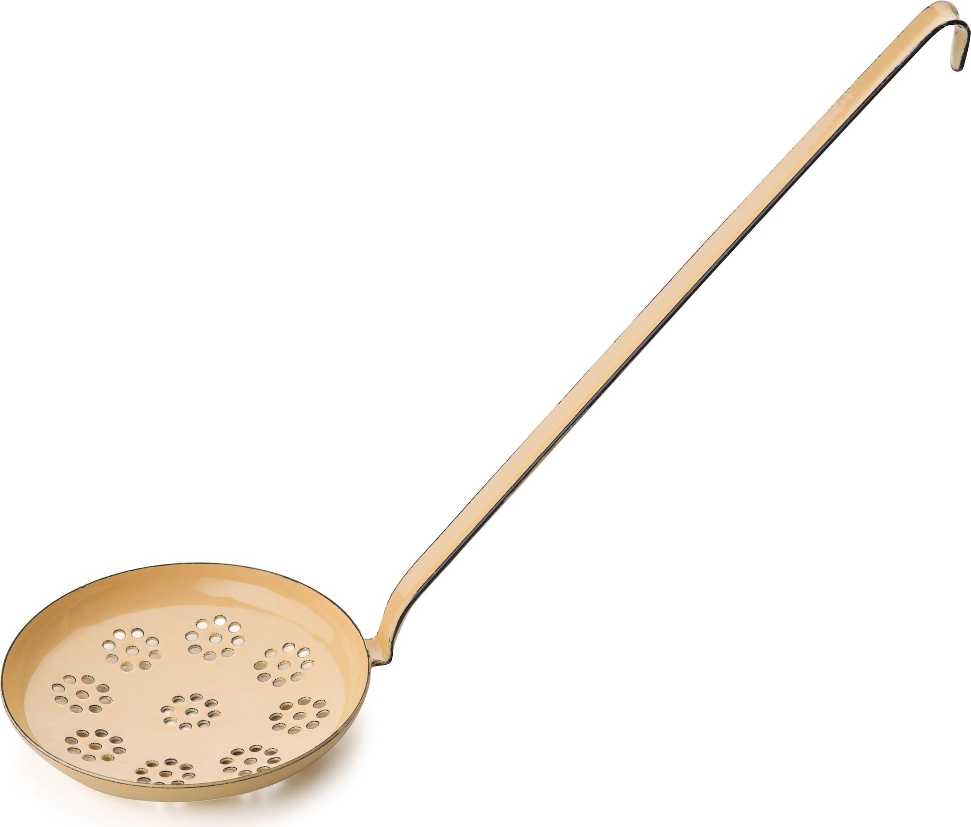 Deze mooie schuimspaan heeft een diameter van 12 cm en is uitgevoerd in een nostalgische gele kleur. De keukenhulp is extreem duurzaam, is gemaakt van email en daardoor extreem krasvast.