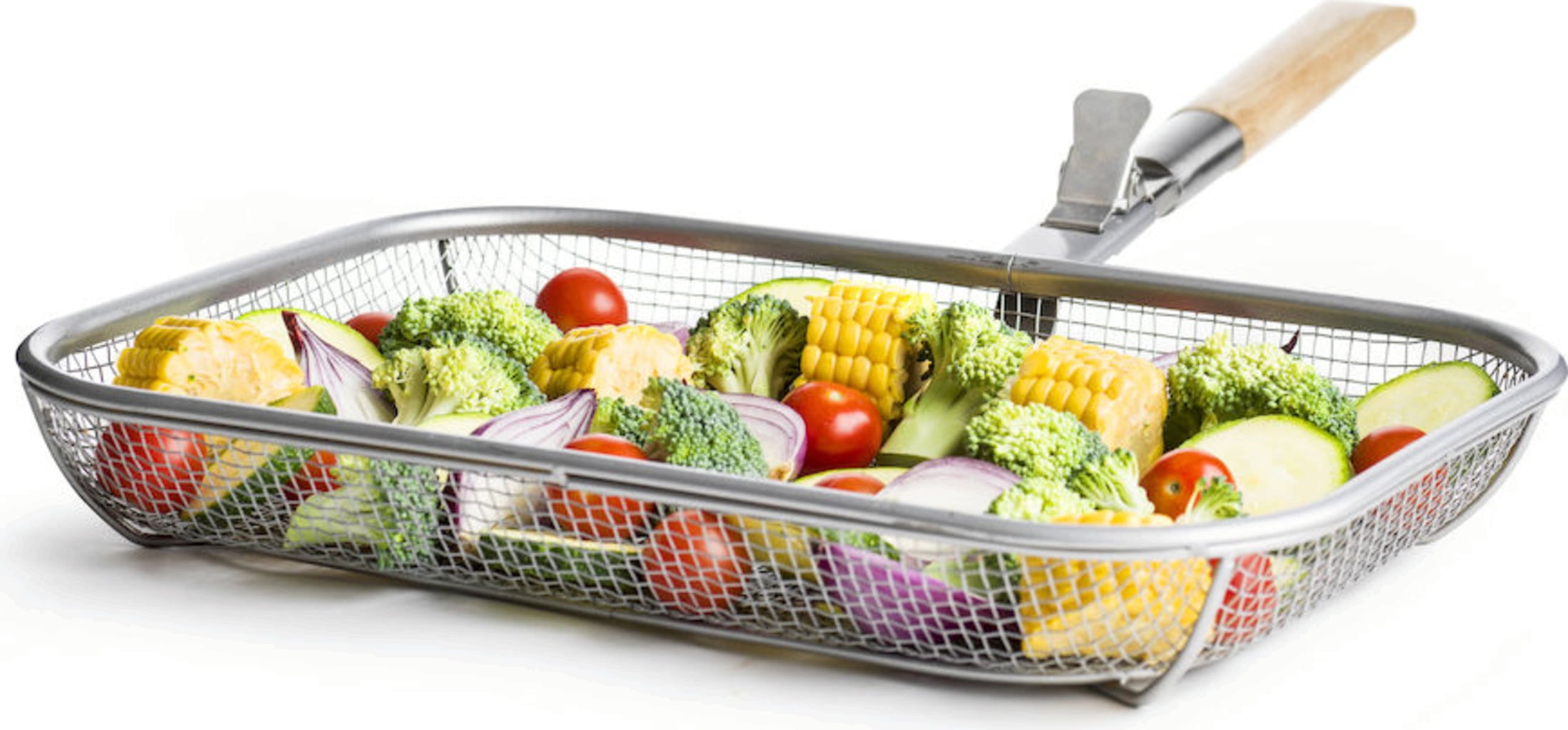 Deze barbecuemand is het slimme accessoire voor barbecuemeesters en perfect voor het bereiden van kleiner gebarbecued eten. Dankzij de fijne mazen blijft het eten in de mand en blijft je barbecue schoon. Het afneembare houten handvat maakt deze mand bijzonder praktisch en gebruiksvriendelijk.