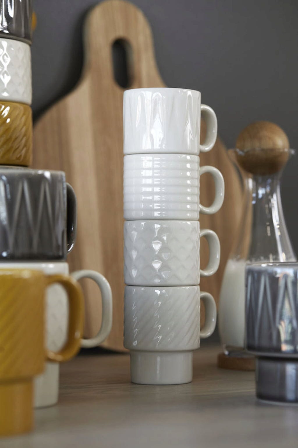 Deze espressokopjes in een praktische set van 4 zijn heel bijzondere blikvangers met hun geweldige jaren 70 ontwerp, die een onweerstaanbare stijl brengen in je keuken en op je koffietafel. Het reliëfpatroon en de elegante kleuren geven ze hun unieke look in een trendy retrostijl, waardoor ze ook een geweldig idee zijn als cadeau.