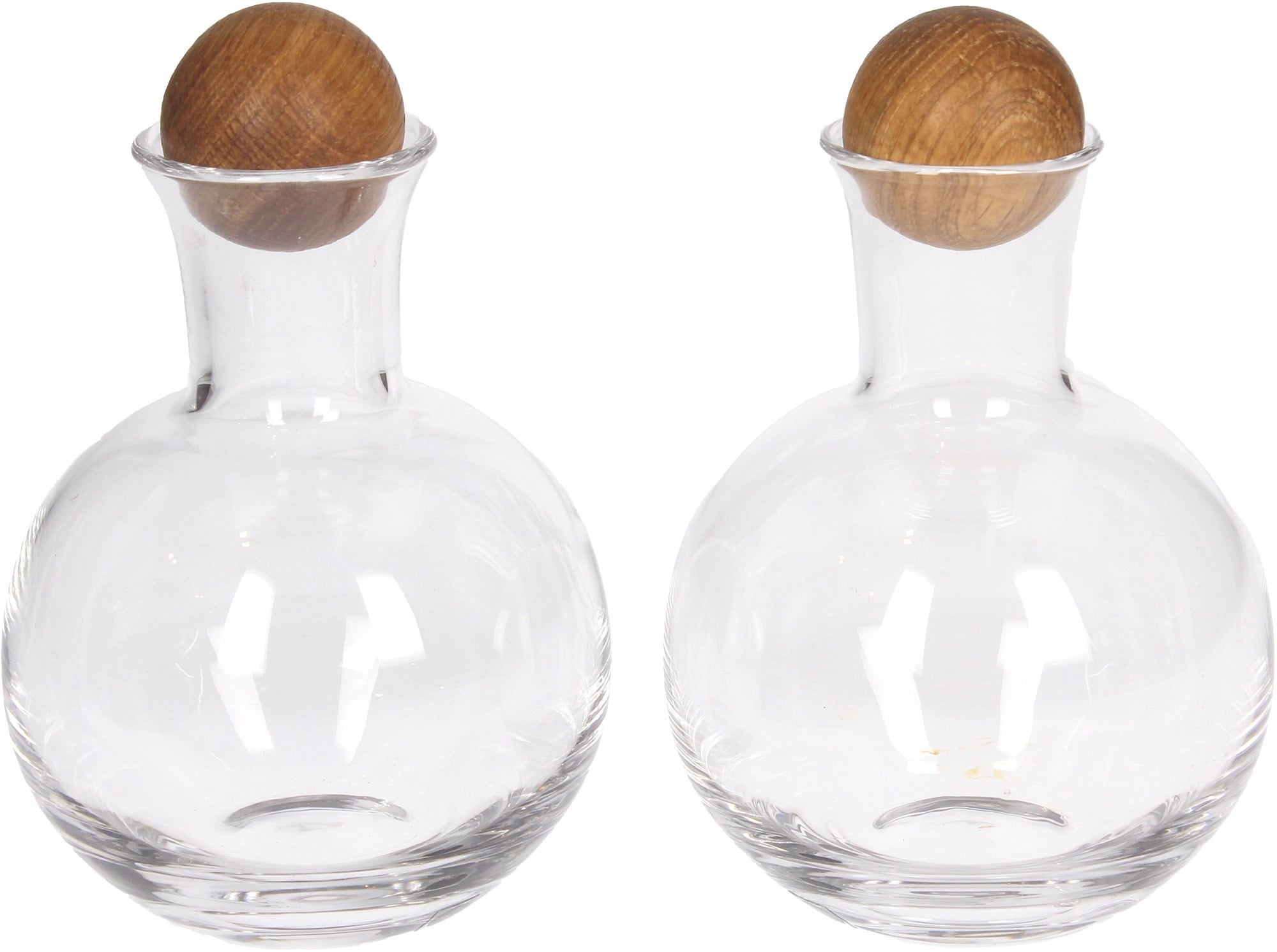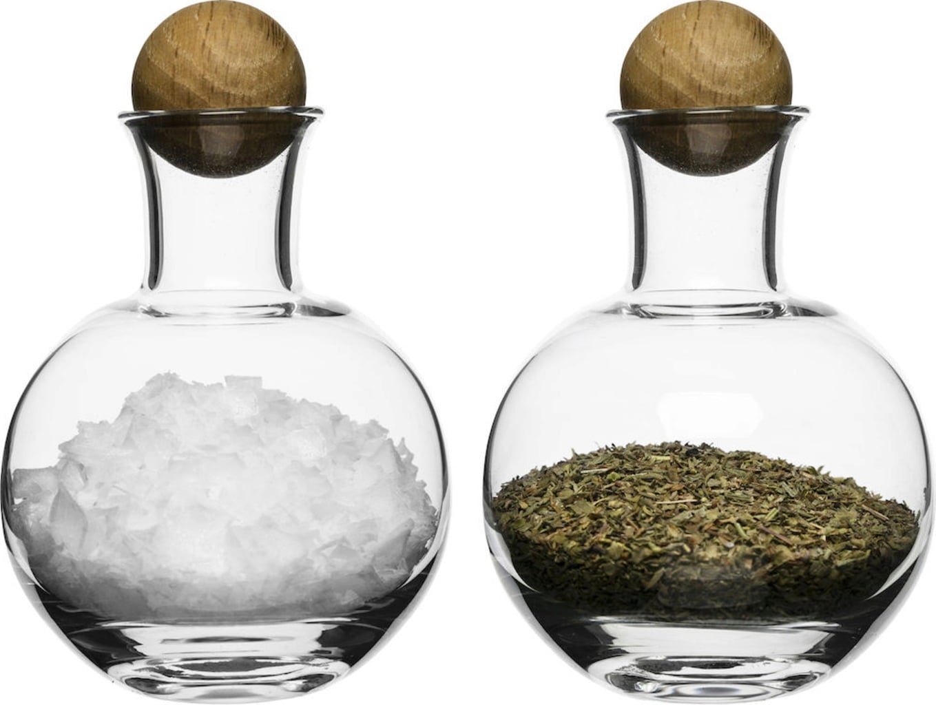 Serveer zout, peper en andere kruiden in stijl met deze stijlvolle set van 2 uit de Nature-serie van sagaform. Gemaakt van mondgeblazen glas met eiken kralen als sluiting.