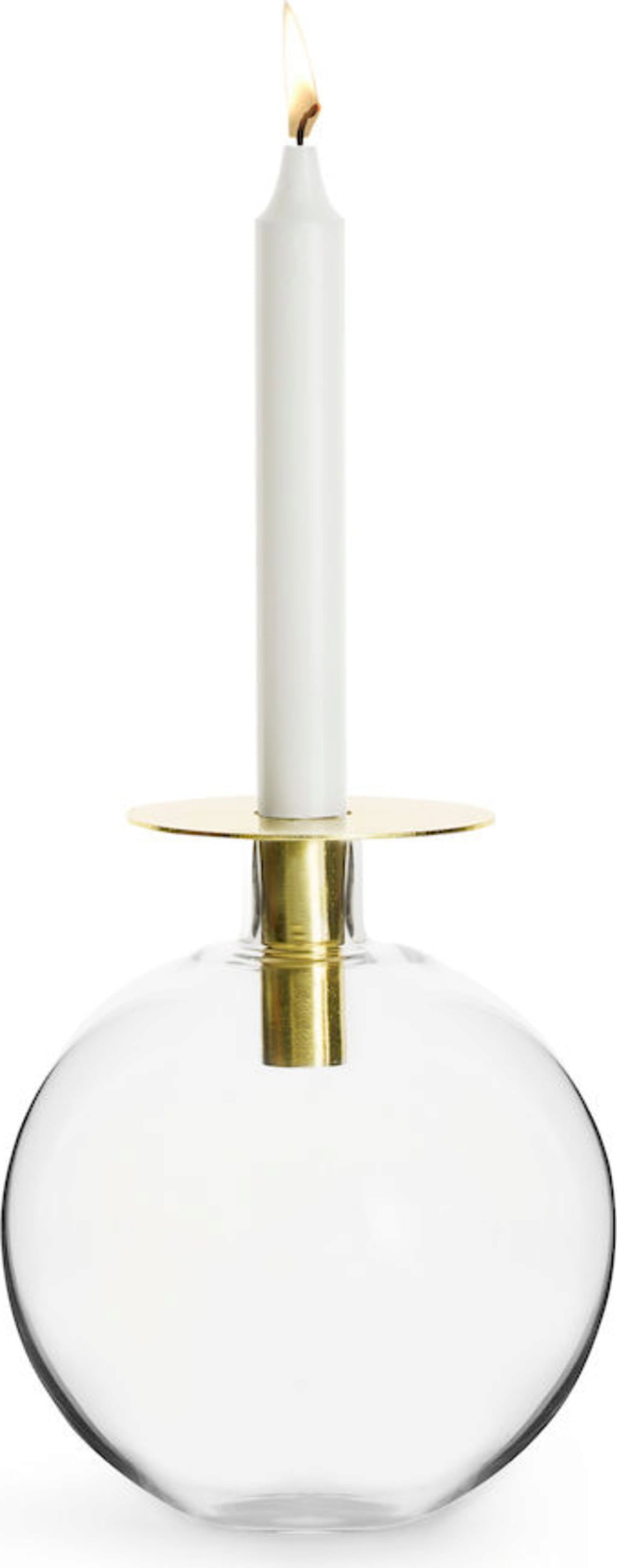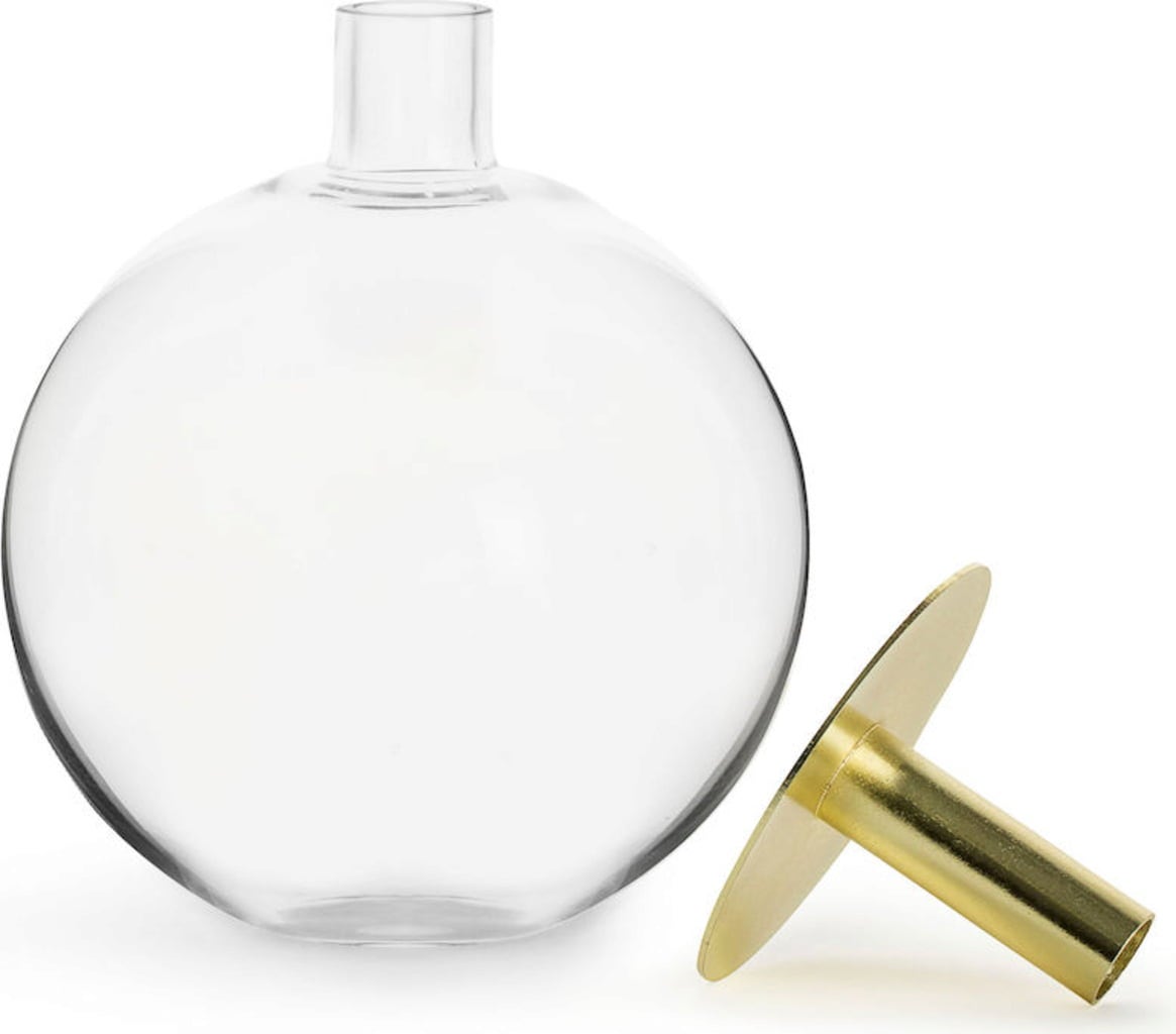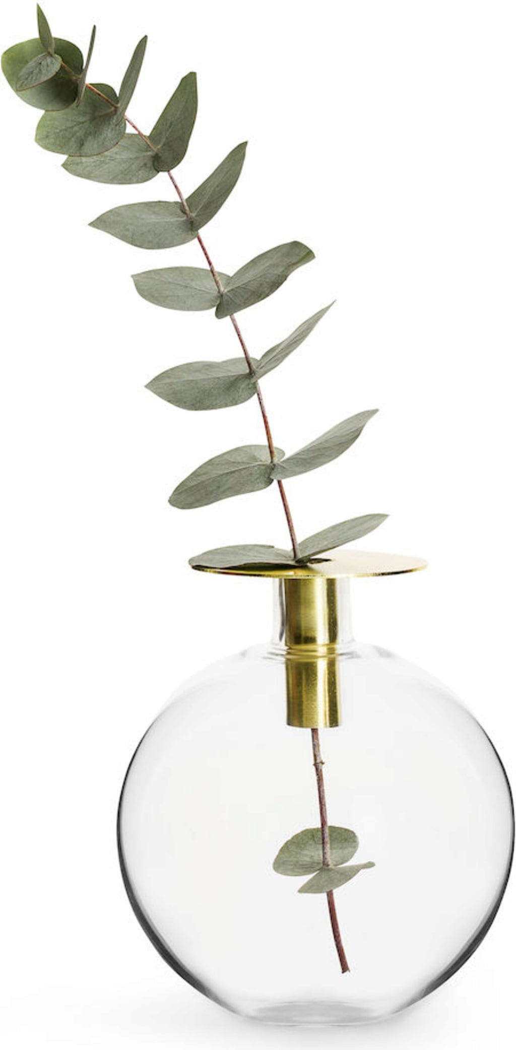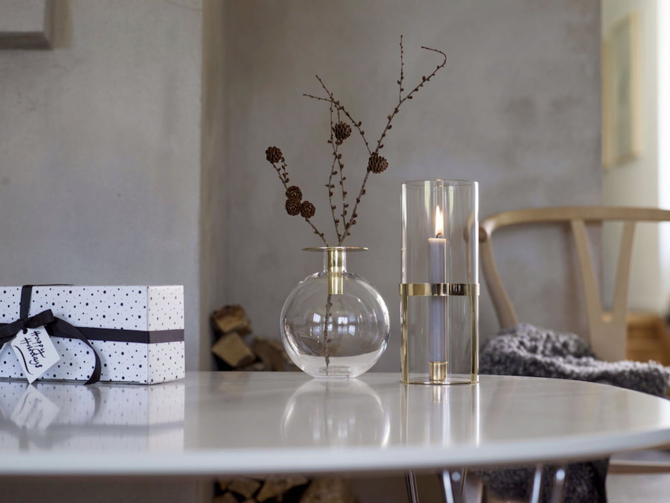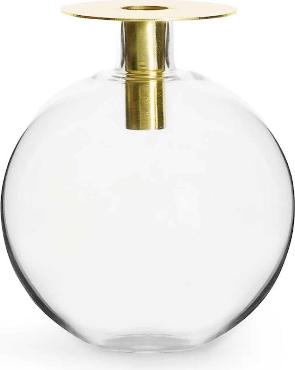 Deze vaas is eenvoudig en bijzonder en is met zijn mix van metaal en mondgeblazen glas een unieke eyecatcher. Niet alleen snijbloemen komen op onvergelijkbare wijze tot hun recht, maar ook kaarsen: in plaats van een vaas kun je dit exclusieve decoratieobject ook gebruiken als stijlvolle kandelaar.