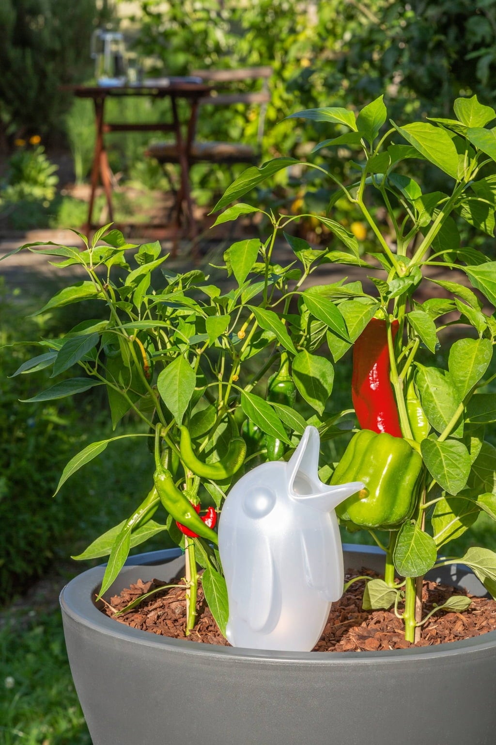 Dit schattige plastic vogeltje is meer dan alleen een mooie decoratie. Stop hem gewoon in de grond gevuld met water en hij voorziet je favoriete groene planten op betrouwbare wijze van vocht. Op het balkon, het terras, in de tuin of zelfs in de woonkamer - Bördy past zich overal aan en zorgt ervoor dat je planten altijd genoeg water krijgen.