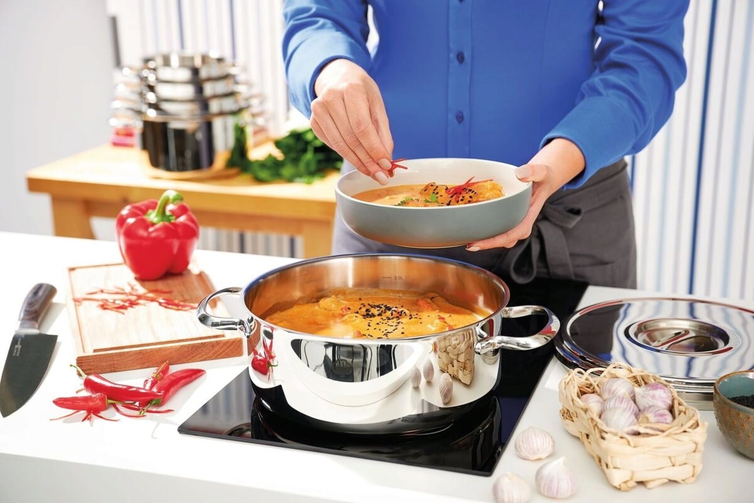 De Romana i braadpan is al meer dan 40 jaar favoriet! Geen wonder, want het is een echte allrounder die dankzij de koperen bodem op alle gangbare kookplaten kan worden gebruikt. Doordachte extra's zoals de stabiliserende schenkrand en de praktische binnenschaal maken hem bijzonder praktisch.