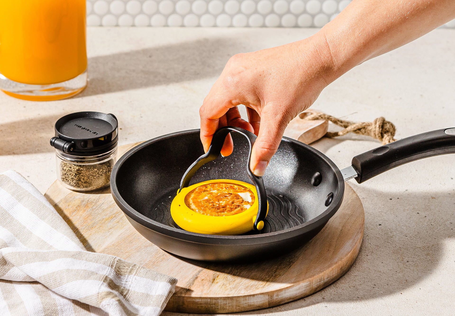 Dankzij de slimme binnenring wordt het ei netjes opgetild, terwijl de dooier precies blijft waar hij hoort. De flexibele greep zorgt daarbij voor een veilige houvast en maakt het serveren kinderspel. Gemaakt van hittebestendig siliconen en nylon, is deze BPA-vrije keukenhulp extreem duurzaam en ideaal voor dagelijks gebruik aan het fornuis.