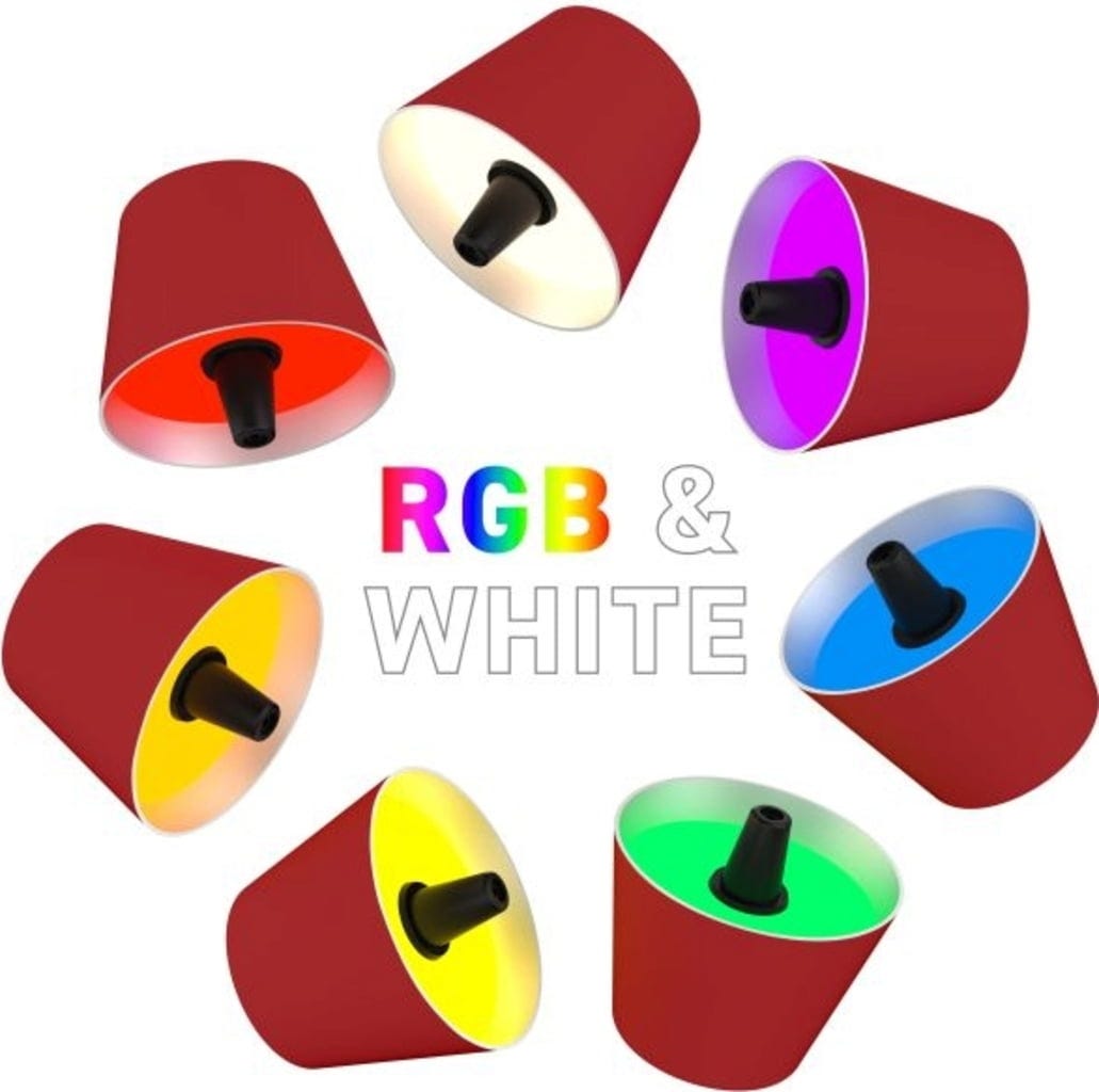 • De lampenkappen in de kleuren rood, lila, antraciet, grijs, turquoise en zand hebben naast het warmwitte licht nog 6 felle kleuren. Je kunt een kleurtoon kiezen, maar je kunt ook de automatische stand van 12 minuten instellen. Hierbij wisselt de lamp automatisch en continu tussen de verschillende kleuren, waardoor een sfeervolle ambiance ontstaat.