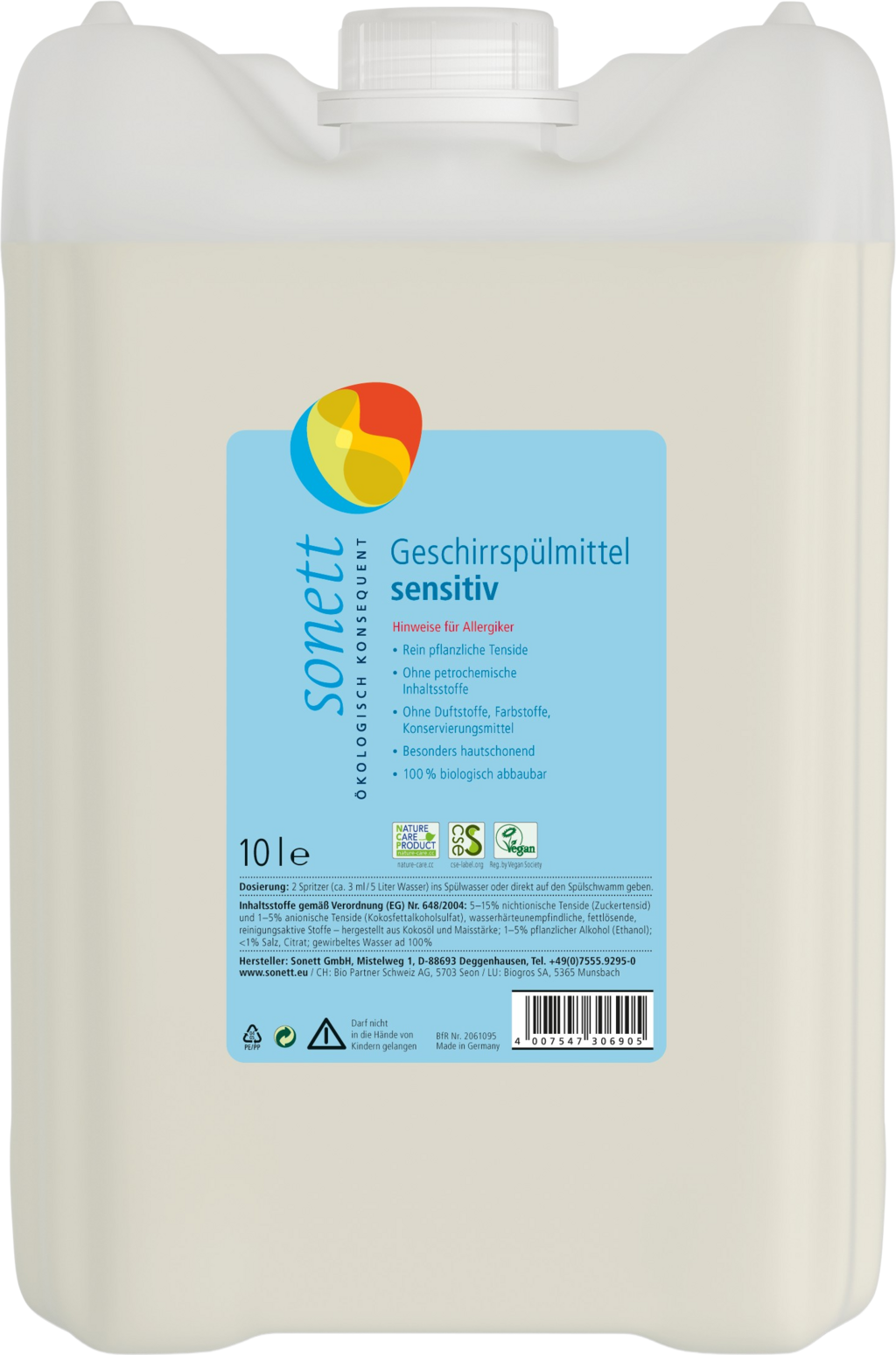 Met behulp van zuiver plantaardige oppervlakteactieve stoffen en zonder petrochemische ingrediënten zorgt dit huidvriendelijke afwasmiddel van Sonett voor een sprankelend schone vaat!
