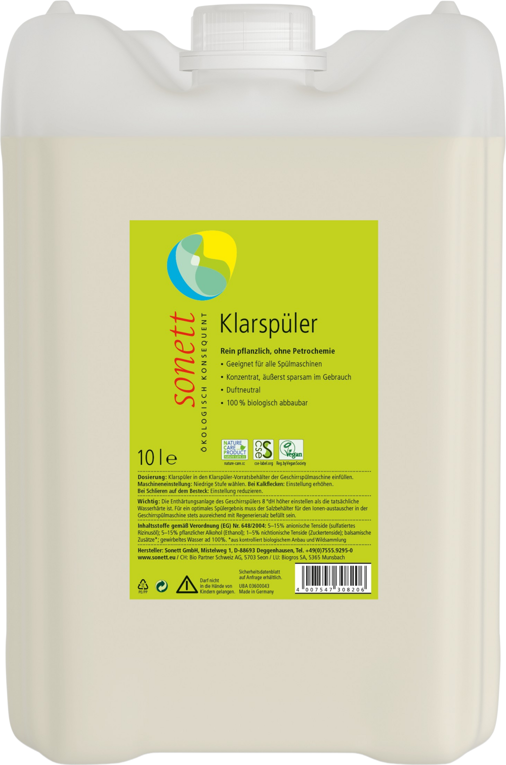 Het sonett glansspoelmiddel voorkomt kalkaanslag op de vaat en is gemaakt van puur plantaardige ingrediënten. Het is geschikt voor alle huishoudelijke vaatwassers.