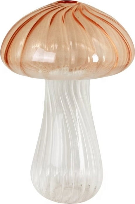 De schattige vaas in delicaat perzikroze maakt indruk met zijn speelse paddenstoelvorm en combineert elegant design met een praktische functie. Ideaal als kleine kleurenpracht op de vensterbank, op een plank of op tafel - hij kan harmonieus worden gecombineerd met verschillende inrichtingsstijlen.