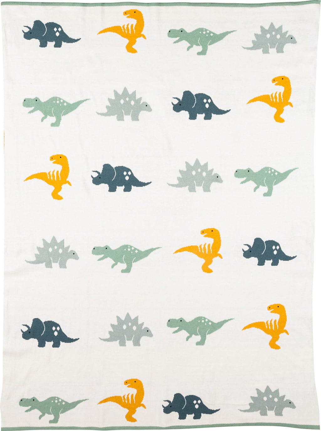 De dinosaurusdeken met zijn kindvriendelijke ontwerp en zachte kleuren is de perfecte aanvulling voor de kinderkamer. Om te knuffelen of als kruipdeken. Het zachte katoenen breisel is bijzonder zacht en biedt milieuvriendelijk comfort.
