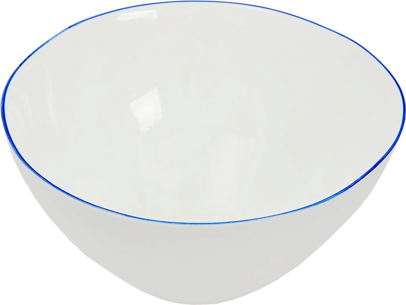 Deze grote slakom is ideaal om te dresseren en te serveren, maar is ook geschikt voor desserts. Hij wordt gekenmerkt door zijn onregelmatige vorm, het hoogwaardige, robuuste porselein en de blauwe randlijn.