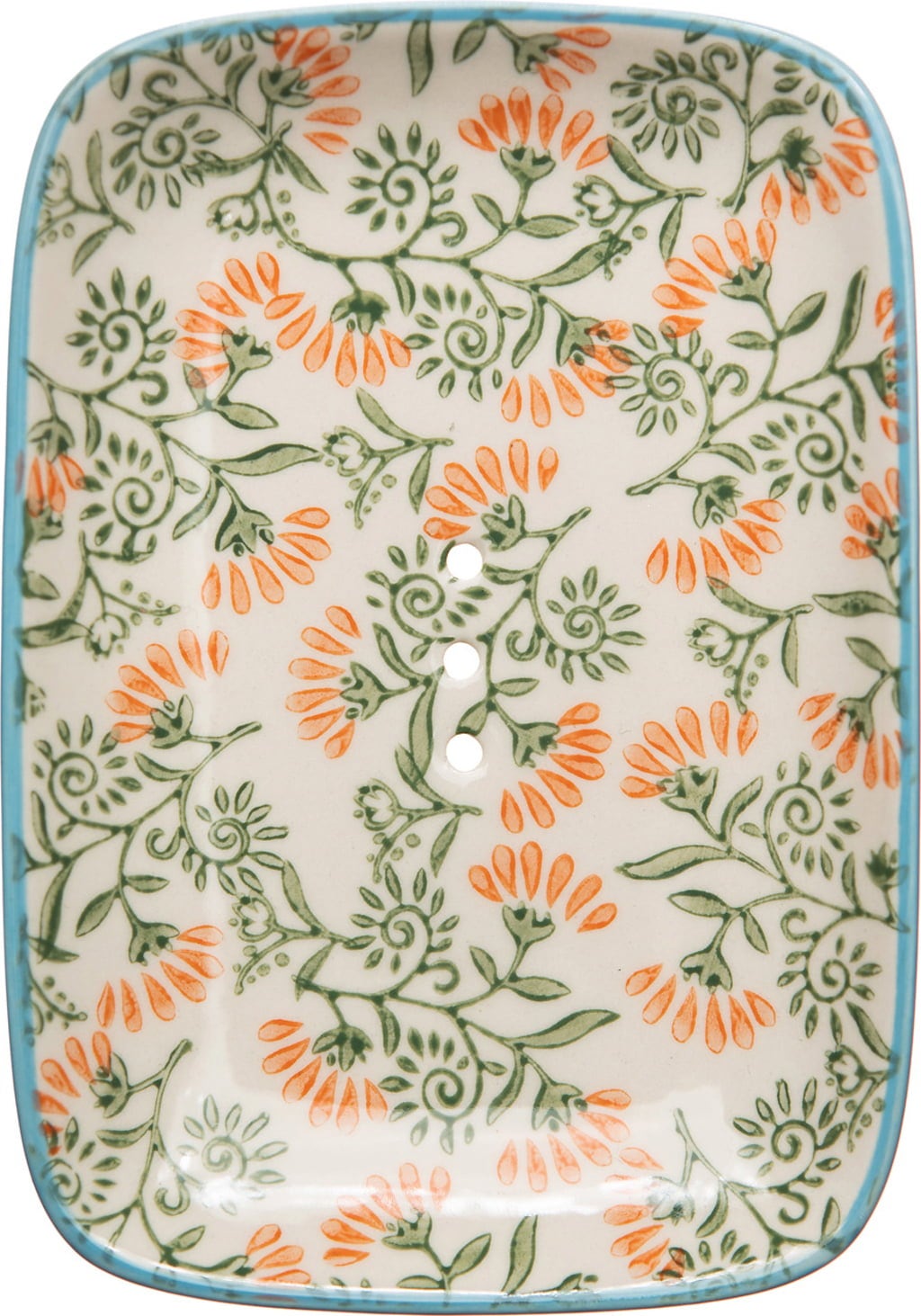 Dankzij de klassieke rechthoekige basisvorm, de royale afmetingen en de afvoergaten is elk stuk zeep in goede handen op deze plank. Ze kan hier ook goed drogen. Het delicate bloemendessin is met de hand gestempeld en zeer onopvallend.