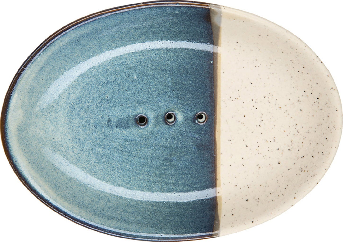Dit hoogwaardige zeepbakje van glanzend geglazuurd aardewerk is een echte blikvanger in elke badkamer. Het elegante, ovale design in twee verschillende kleuren past perfect bij elke interieurstijl. De ovale vorm past perfect bij het puristische design, terwijl de drie discrete afvoergaten ervoor zorgen dat overtollig water wegloopt en de zijkant niet doorweekt raakt.