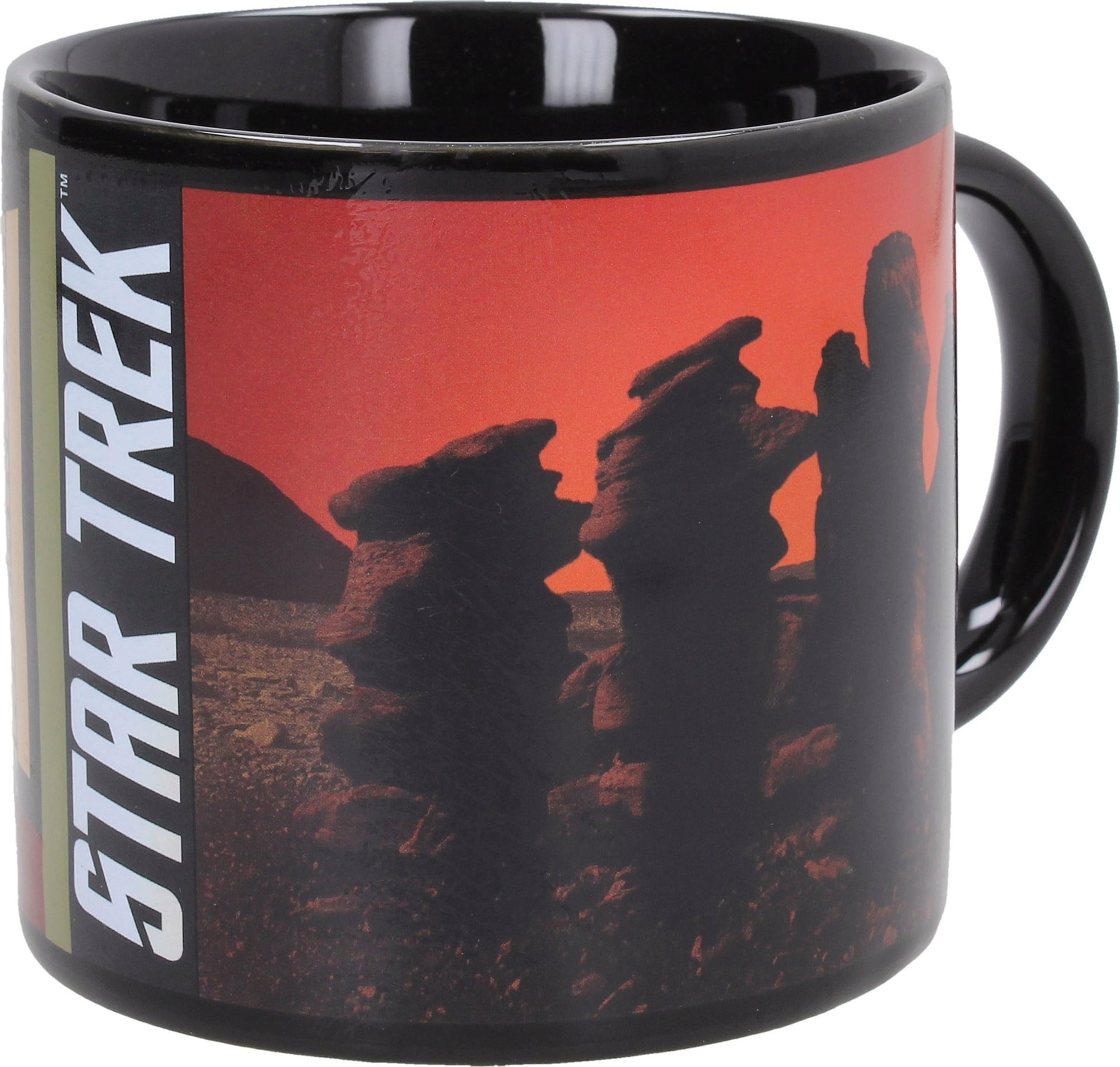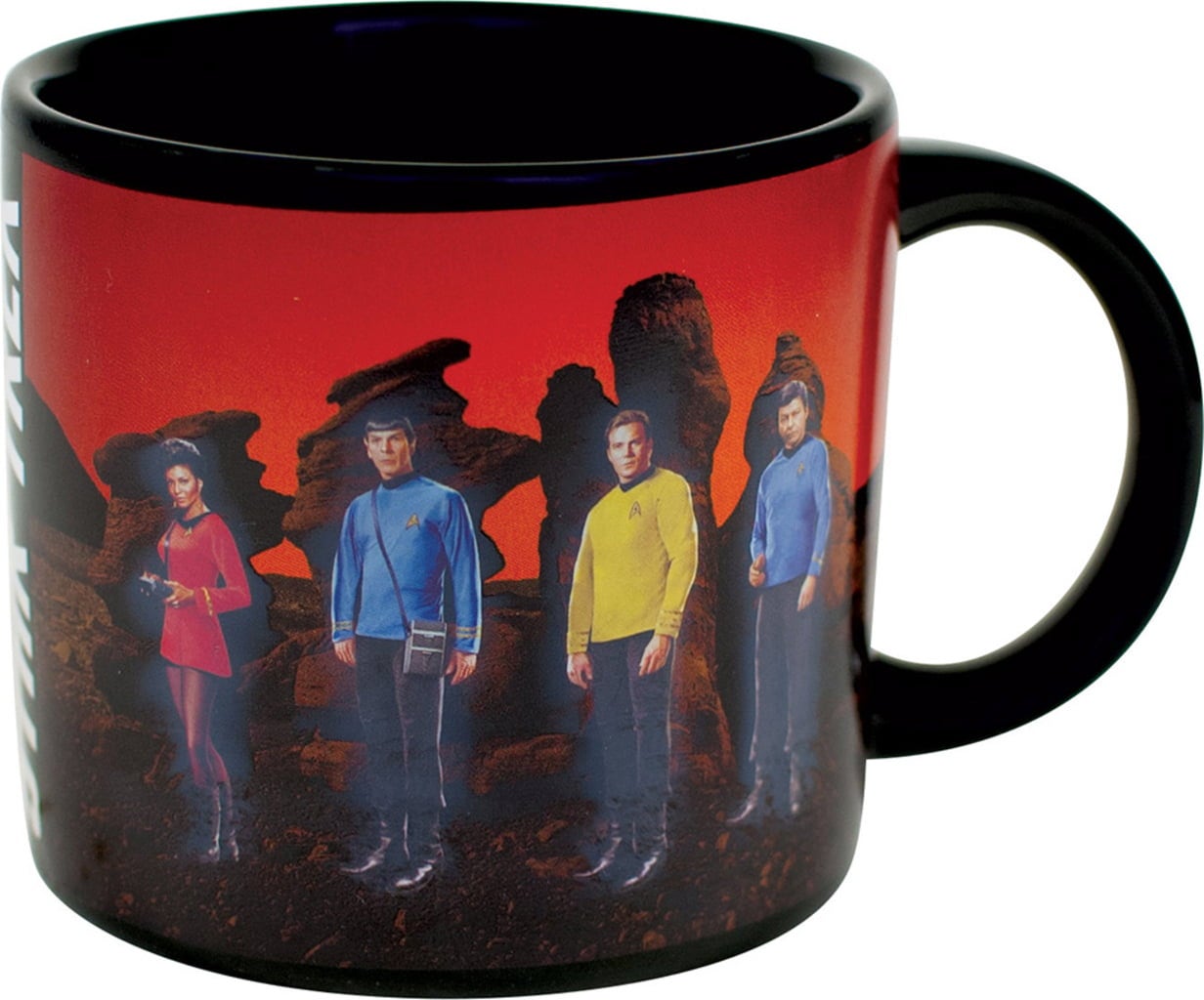 Star Trek fans opgelet! Zodra er hete vloeistof in deze originele mok wordt gegoten, verlaten Captain Kirk, Mr Spock, Lieutenant Uhura en Dr McCoy als bij toverslag de transporterruimte aan de voorkant van de mok. Aan de andere kant verschijnen ze weer om het mysterieuze oppervlak van de planeet te verkennen.