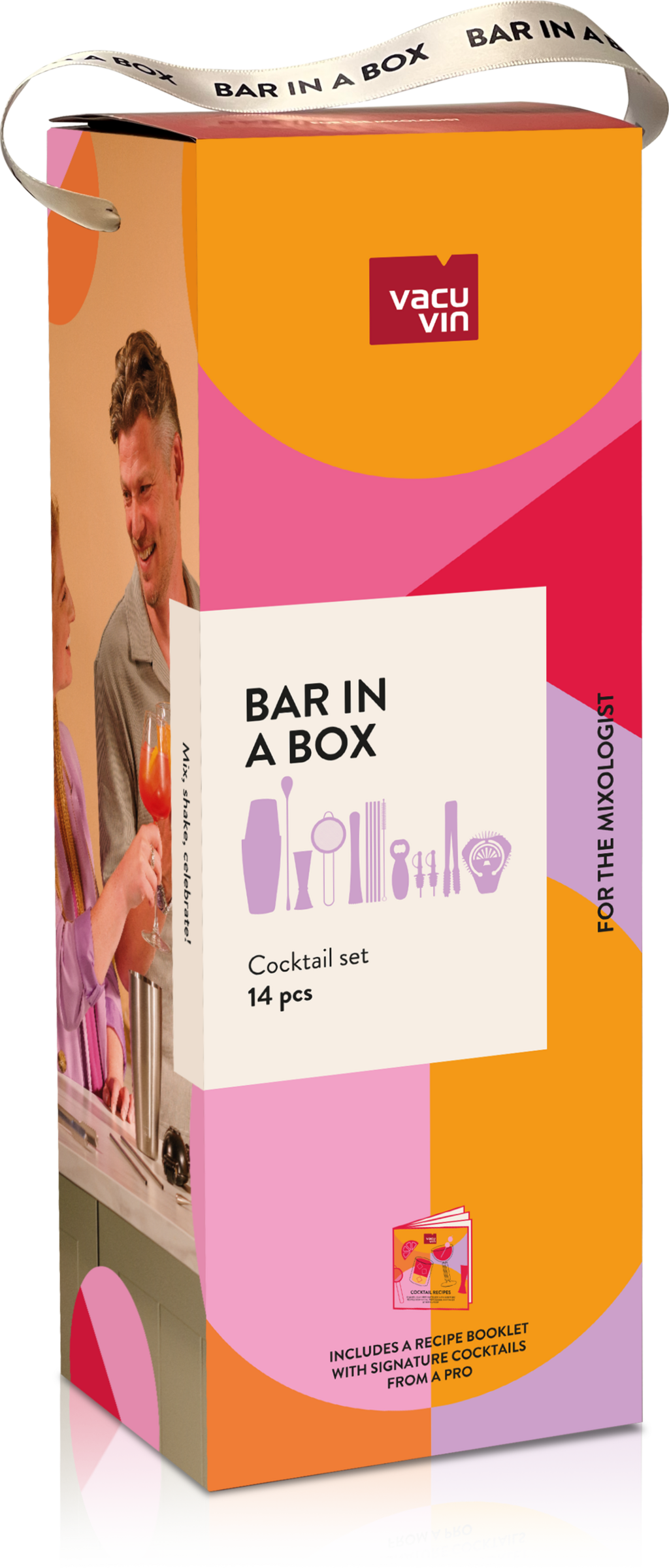Klaar om je thuisbar naar een hoger niveau te tillen? De Vacu Vin Bar in a Box Mixologist is een 14-delige set voor iedereen die van cocktails houdt. De set is ontwikkeld in samenwerking met een professionele bartender en brengt stijl, functionaliteit en creativiteit rechtstreeks naar uw keuken - perfect voor gepassioneerde mixologen en iedereen die dat wil worden.
