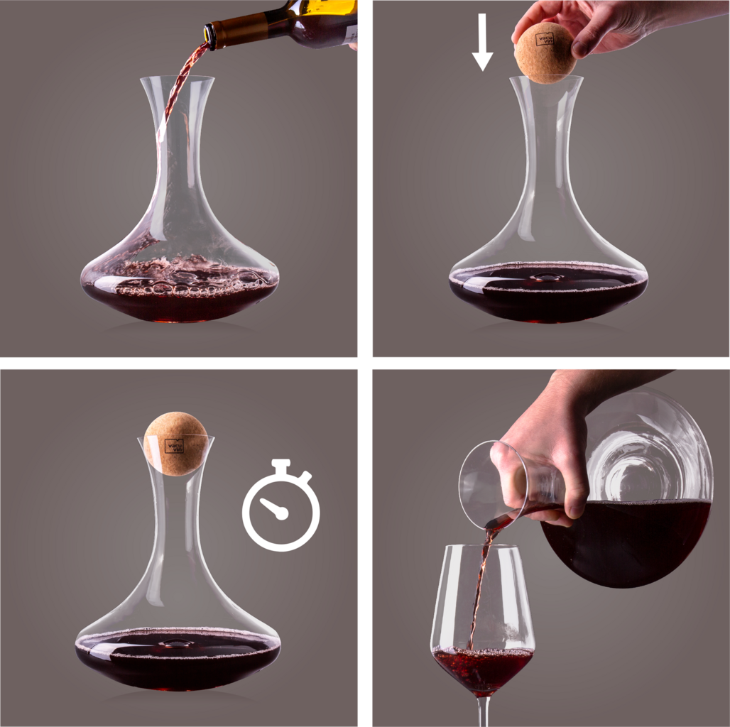 - Meer smaak: het grote oppervlak belucht de wijn optimaal en verzacht de tannines.