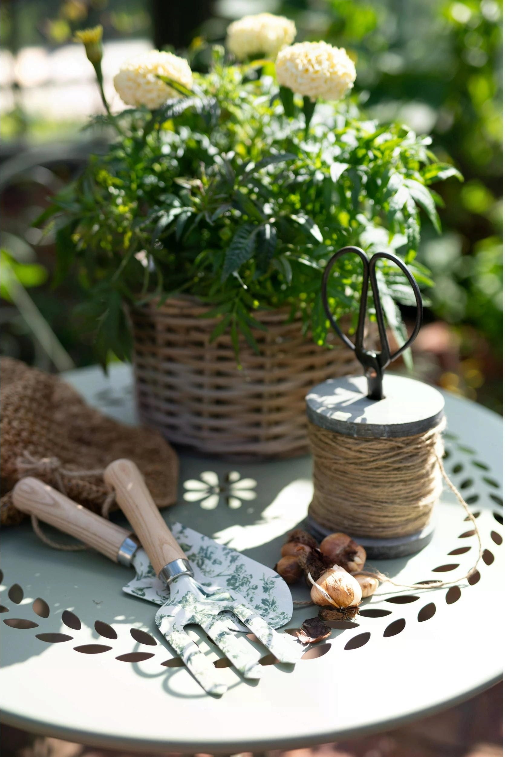Deze set bevat een schaar en garen van natuurlijk jute, twee onmisbare tuingereedschappen. Het aantrekkelijke vintage ontwerp maakt het ook een geweldig stijlvol cadeau voor hobbytuiniers.
