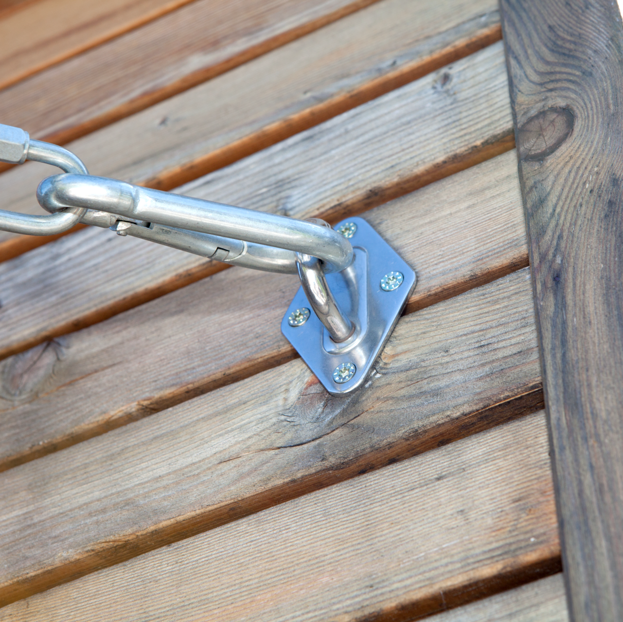 De perfecte accessoire voor het bevestigen van de luifel. Geschikt voor houten palen en metselwerk. Dit betekent dat het schaduwdoek goed op spanning kan worden gebracht met touwen of ankers. Als alternatief kan ook een karabijnhaak of D-sluiting worden gebruikt.