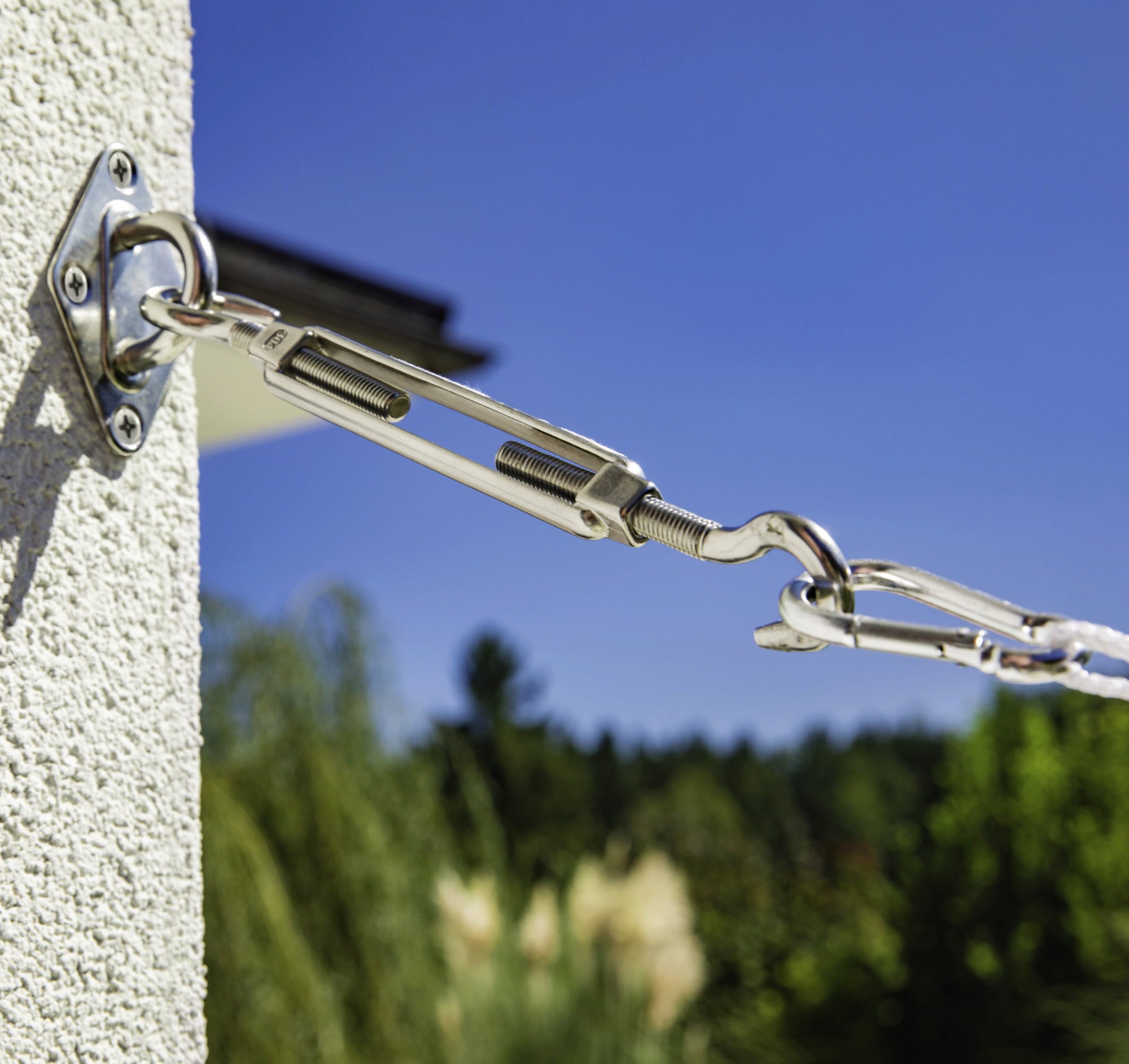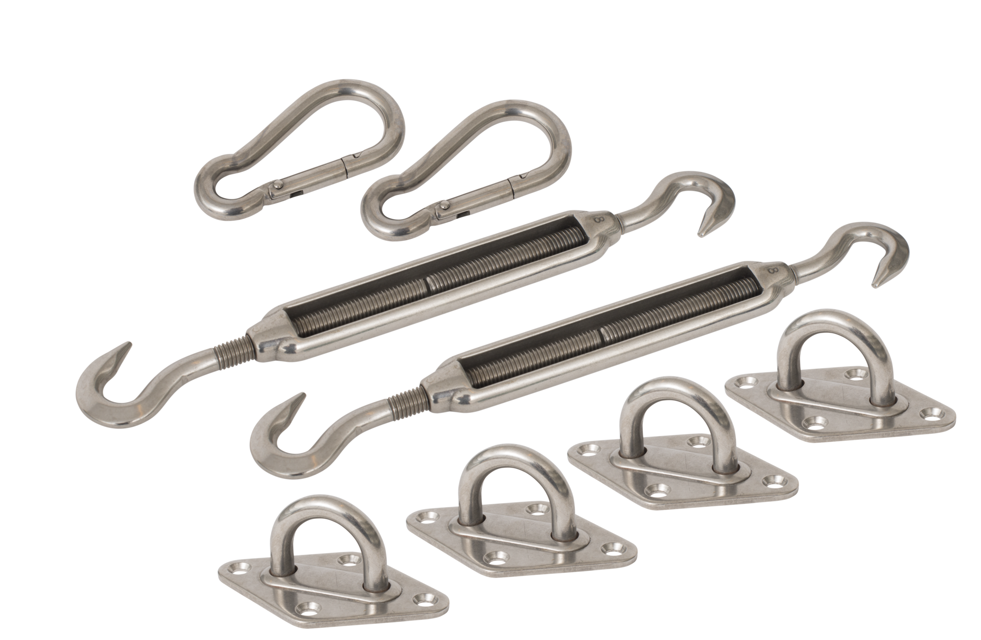 De schaduwdoek bevestigingsset is een handig accessoire om ervoor te zorgen dat je luifel goed en stevig vastzit.
