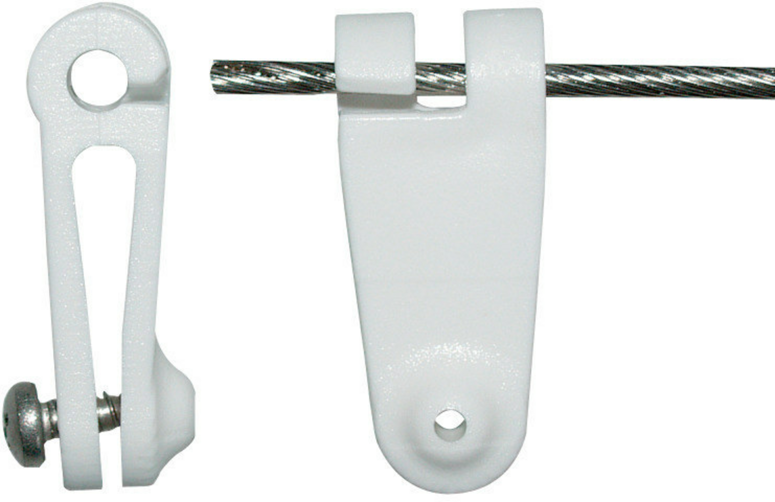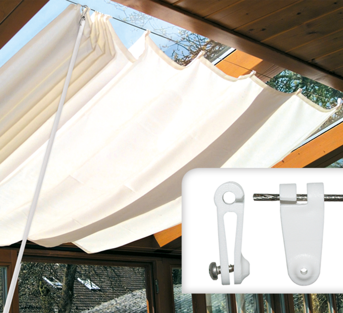 De loophaken worden gebruikt om het zonnezeil aan de roestvrijstalen kabel te bevestigen. Geschikt voor 2 - 2,5 mm dikke roestvrijstalen kabels. Gemaakt van UV-bestendig kunststof.