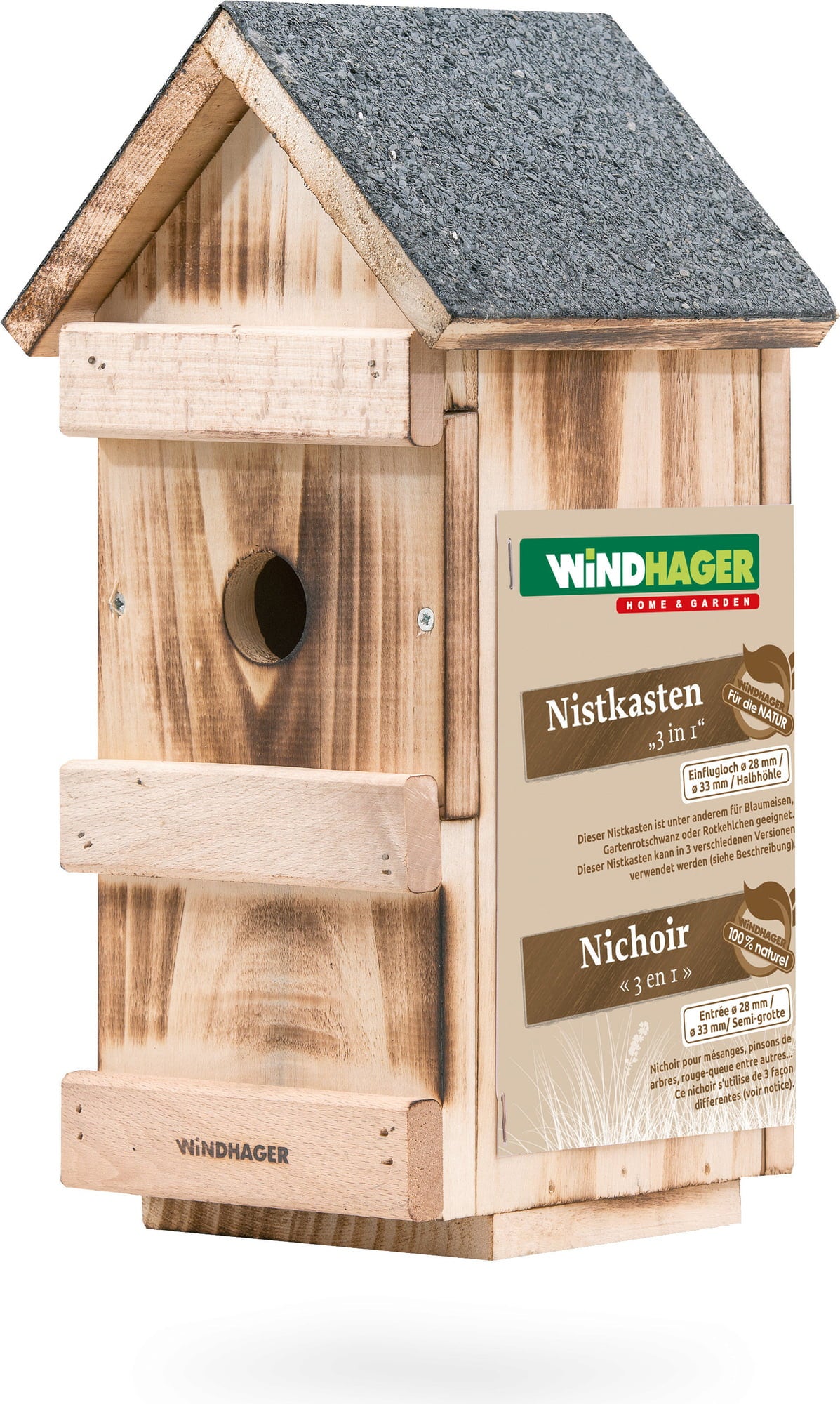 Het 3 in 1 nestkastje is zo ontworpen dat door de voorpanelen te vervangen door verschillende invlieggaten, een nestplaats kan worden gecreëerd voor een verscheidenheid aan inheemse vogels. Het nestkastje biedt bescherming tegen storm en roofdieren. Hier kunnen de vogels ongestoord hun gevederde kroost grootbrengen.
