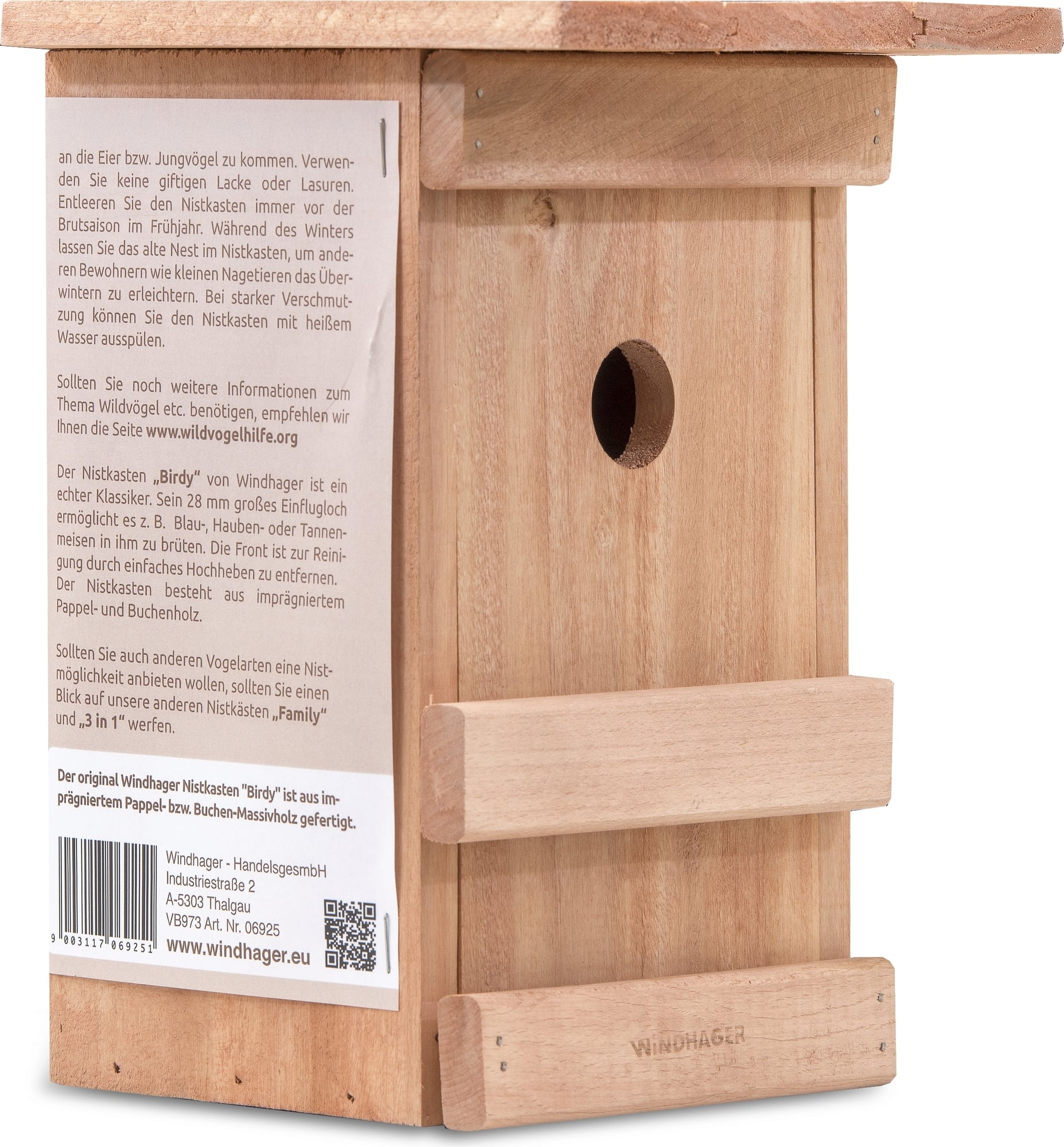 Deze mooie nestkast beschermt vogelsoorten zoals kuif- en pimpelmezen effectief tegen stormen en roofdieren en is de ideale plek voor het ongestoord grootbrengen van de jongen.