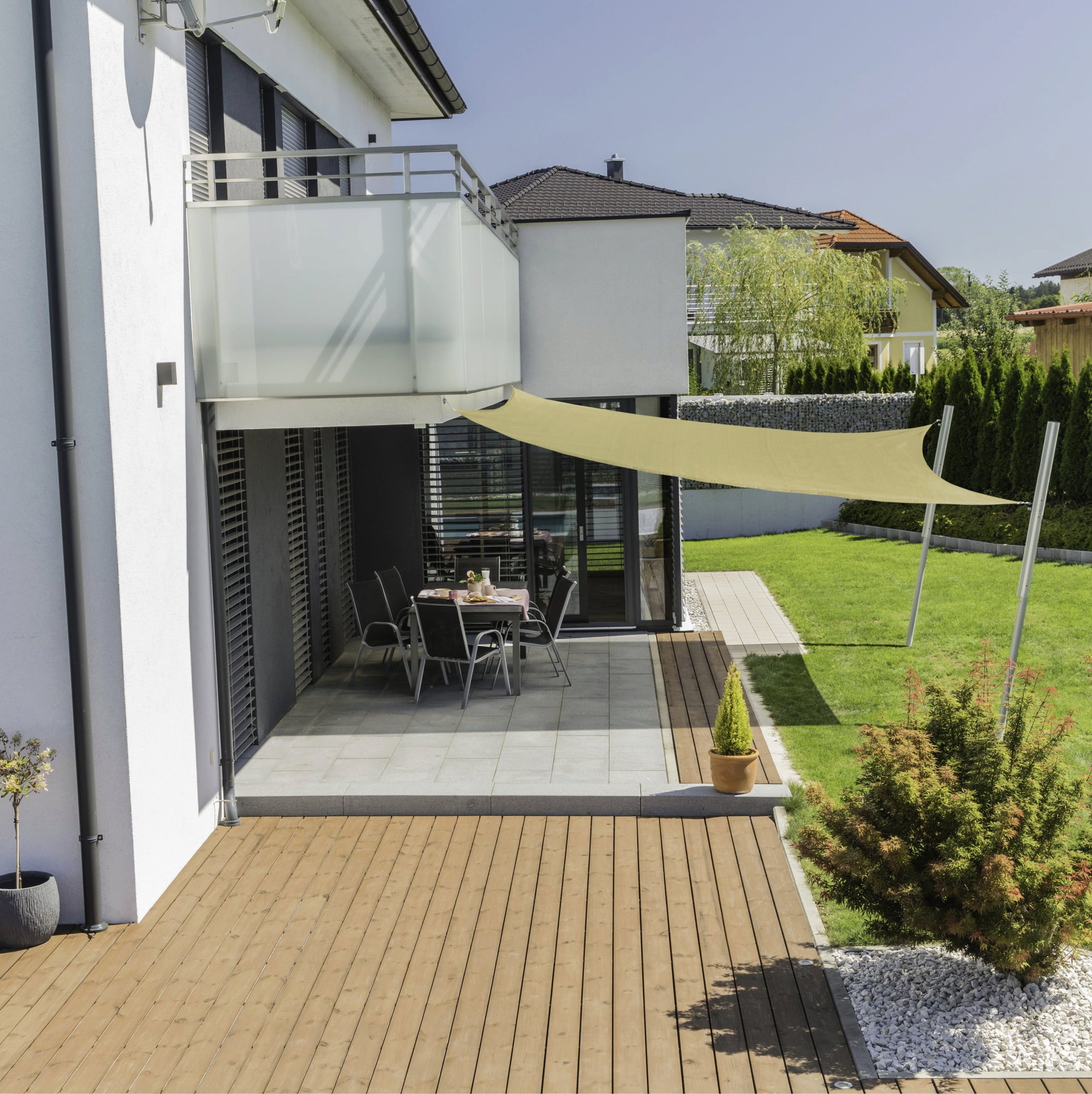 Het vierkante zonnezeil is ideaal voor schaduw in de tuin, op terras of op het balkon. Ook boven het zwembad of de zandbak is het op warme dagen een verademing.
