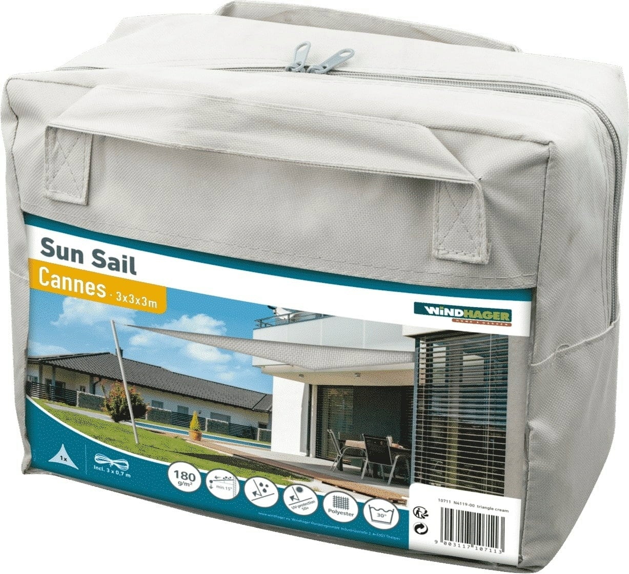 Windhager SunSail CANNES Schaduwdoek, Driehoek 3 x 3 x 3 m, Crème grijs