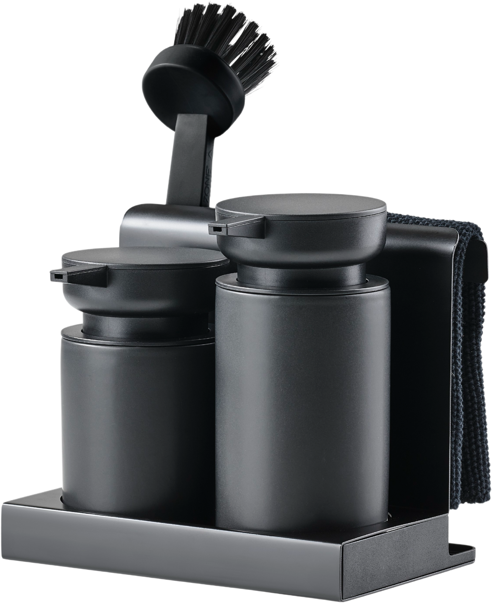 De twee praktische dispensers van hoogwaardig steengoed zijn ideaal voor afwasmiddel, handzeep of ontsmettingsmiddel, dat je met één pompje tot je beschikking hebt. De afwasborstel verwijdert ook hardnekkig vuil van je vaat en is opgeborgen aan de achterkant van de houder, waar je ook het gebreide schoonmaakdoekje kunt ophangen - zo heb je alles bij de hand en is alles rond de gootsteen opgeruimd!