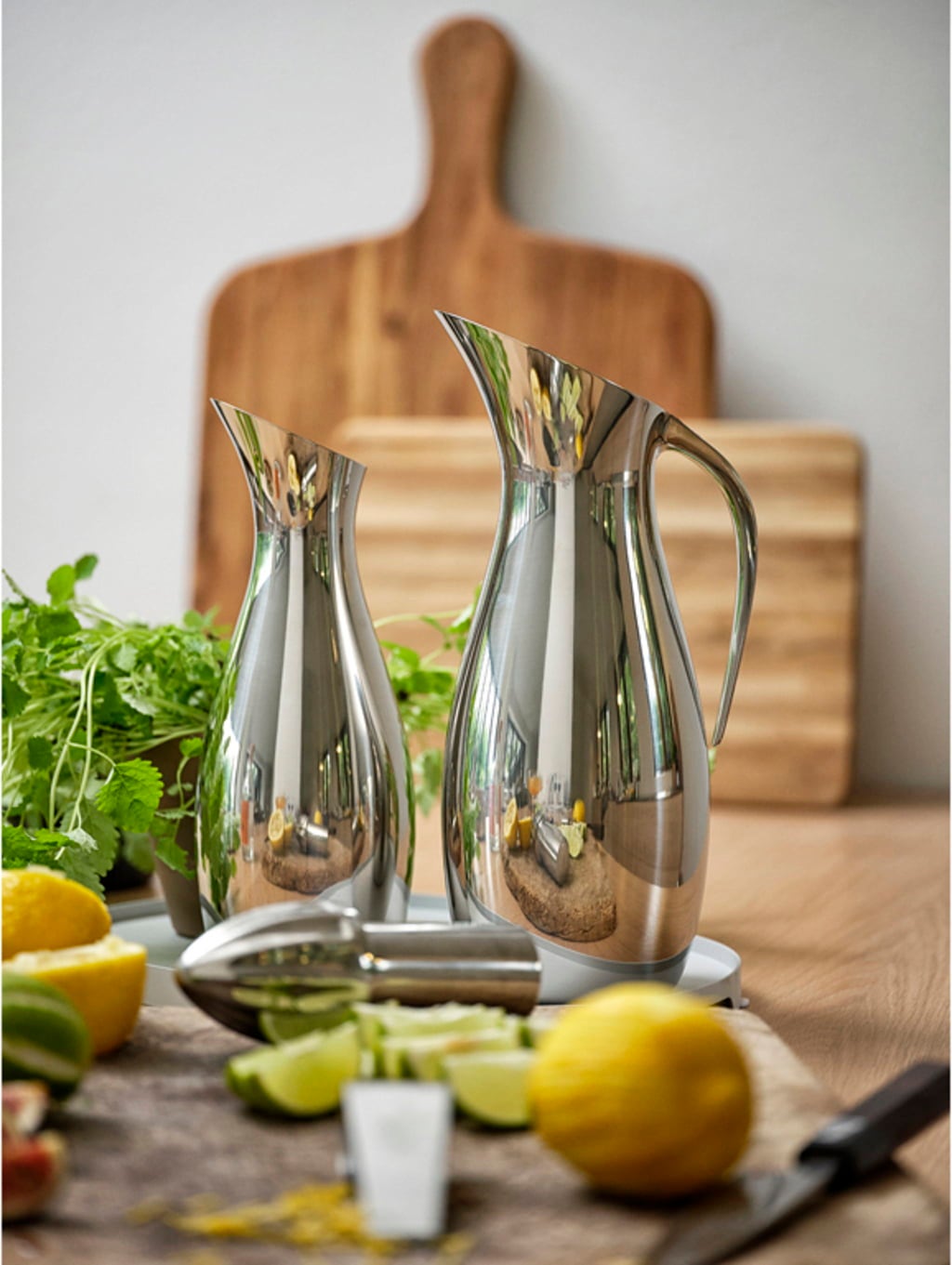 Serveer je gasten verfrissende drankjes uit een kan die elegantie en functionaliteit combineert. De Zone Denmark kan van gepolijst roestvrij staal is niet alleen een echte blikvanger, maar ook een praktisch hoogtepunt op je tafel! Hij heeft een royale vulcapaciteit van 1,7 liter en een verwijderbaar ijsfilter in de deksel, dat ervoor zorgt dat ijsblokjes, limoen- of citroenschijfjes tijdens het schenken in de kan blijven en niet in het glas terechtkomen.