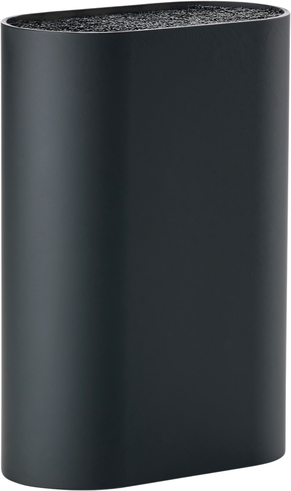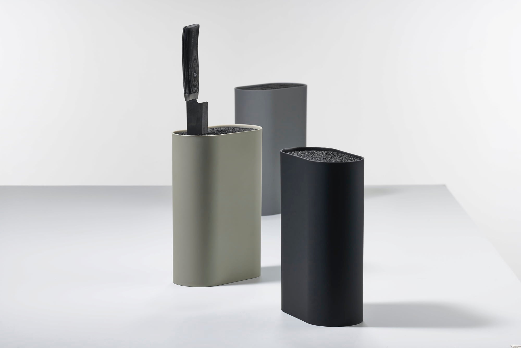 Met zijn flexibele inzetstuk, dat zich aan elk mes aanpast en de punten en lemmeten beschermt, kun je je scherpe keukengerei ruimtebesparend en veilig opbergen.
