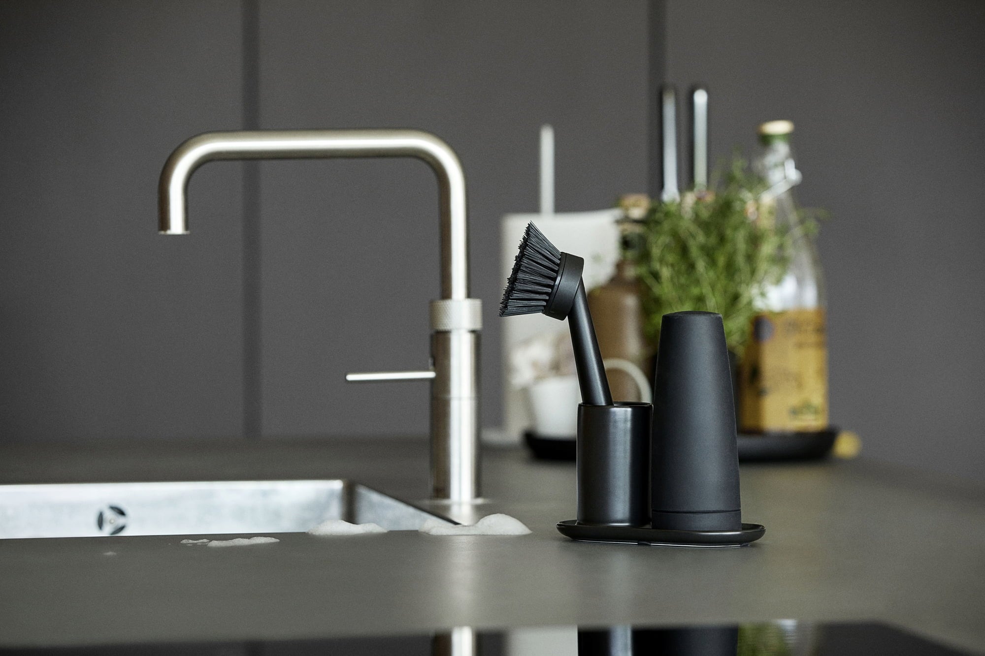 Met deze set heb je de perfecte ondersteuning voor de afwas! Hij bestaat uit een keramische houder van hoge kwaliteit die indien nodig in de vaatwasser gereinigd kan worden en voldoende ruimte biedt voor de functionele afwasborstel met verwisselbare kop en de praktische dispenser voor afwasmiddel.